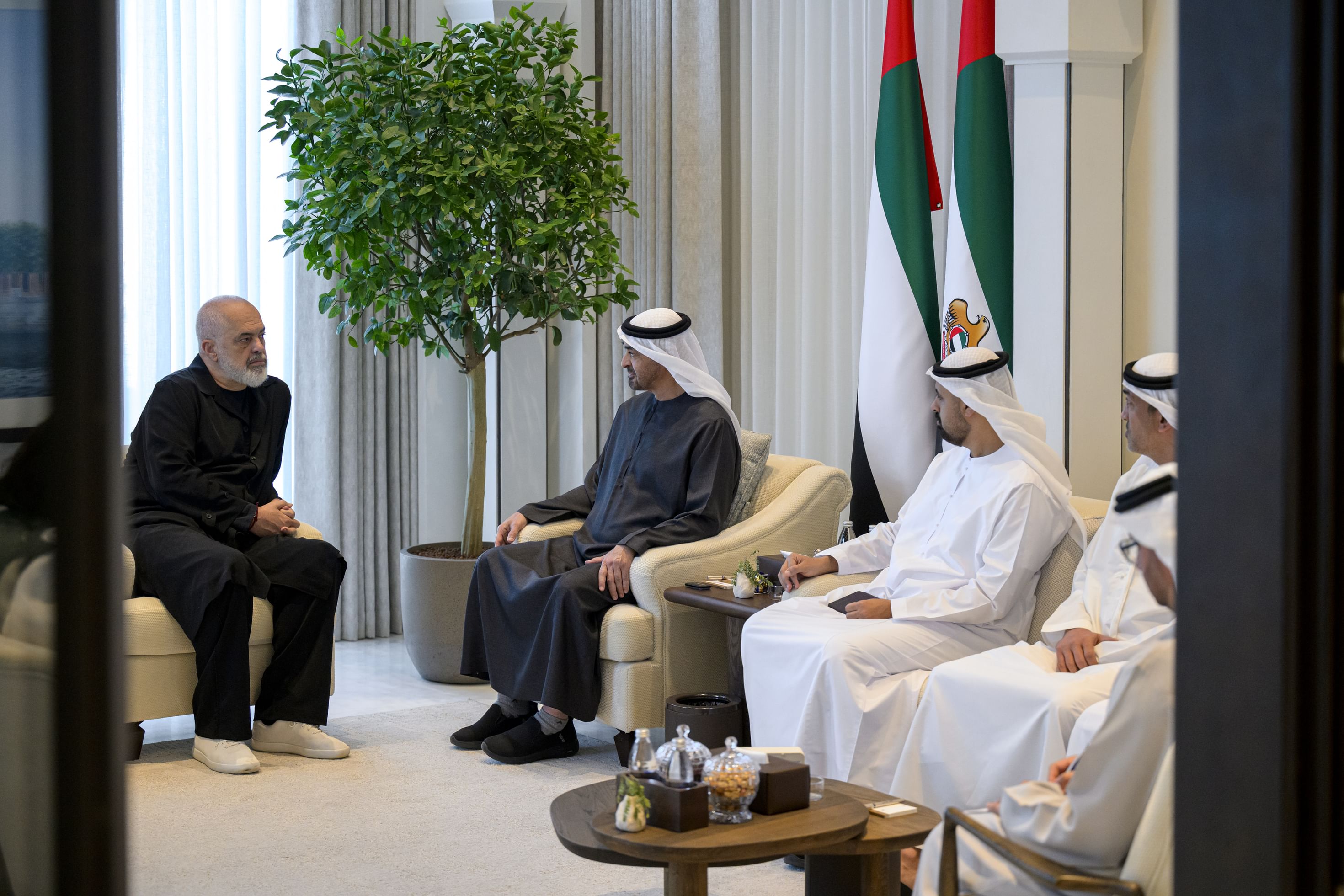 بحث الرئيس الإماراتي محمد بن زايد آل نهيان ورئيس وزراء جمهورية ألبانيا إيدي راما، مسارات تطور العلاقات الثنائية في مختلف المجالات خاصة الاقتصادية والتجارية والطاقة المتجددة والتكنولوجيا وغيرها من المجالات التي تشكل أولوية تنموية للبلدين بما يخدم مصالحهما المتبادلة ويعود بالخير والنماء على شعبيهما.