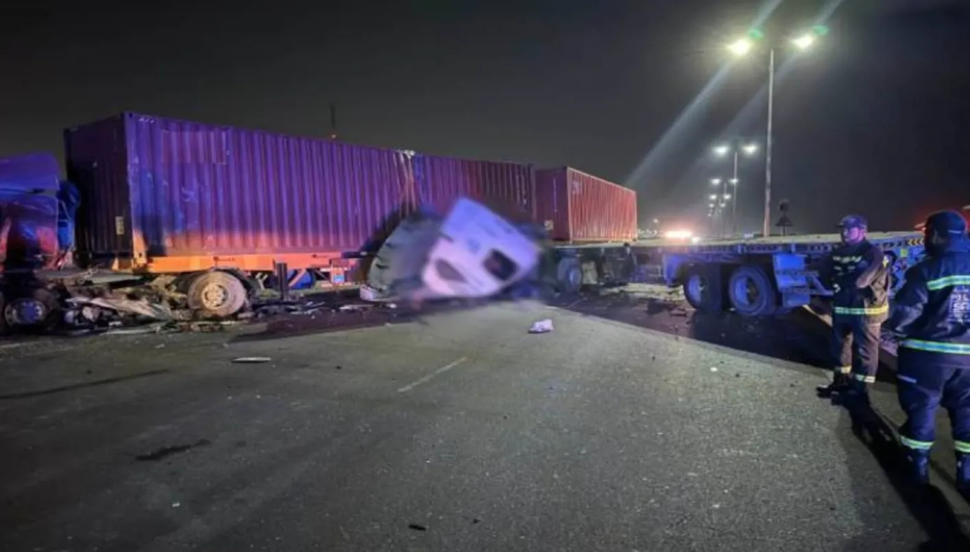 وفي هذا السياق، كشف اللواء سيف المزروعي، عن وقود حادث مروري ناتج عن احتراق إحدى الشاحنات ثم انحرافها ودخولها الشارع المعاكس، مما أدى إلى وقوع تصادم مع شاحنة أخرى.