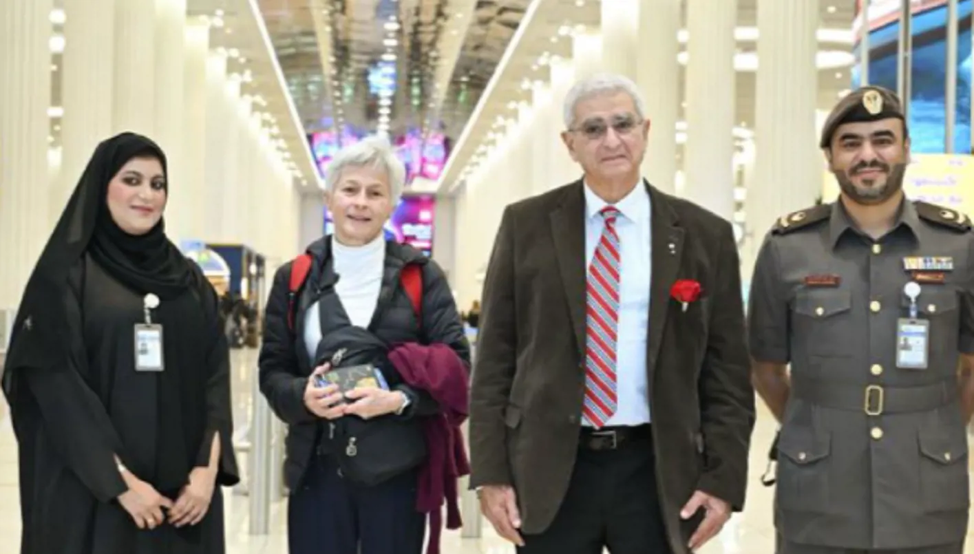 لحظة وصول الفائزين بجائزة نوابغ العرب إلى مطار دبي الدولي (إكس).