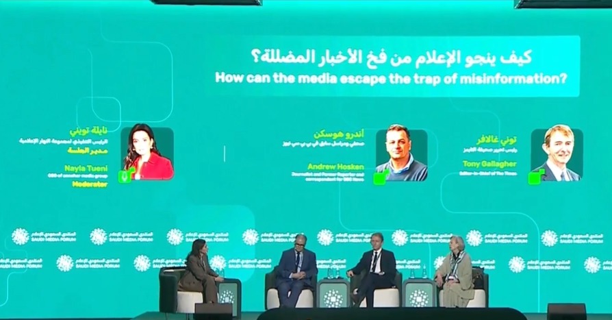 خلال جلسة بعنوان: "كيف ينجو الإعلام من فخ الأخبار المضللة؟" في المنتدى السعودي للإعلام، طرحت رئيسة مجموعة "النهار" الإعلامية نايلة تويني أسئلة محورية حول الضغوط المتزايدة التي يواجهها الإعلام في ظل سيل "المحتوى الكاذب"، متسائلةً عمّا إذا كان السباق مع الوقت يفرض أولوية السرعة على حساب التحقق، أم أنّ الدقة يجب أن تبقى الأساس.