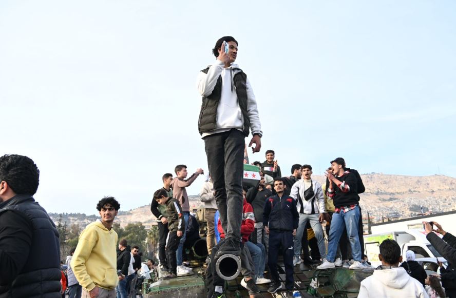 تستمر مظاهر الاحتفالات الشعبية في العاصمة السورية بسقوط النظام السوري، ومنذ ساعات الصباح احتشد الناس في ساحة الأمويين، واعتلى عدد منهم آليات عسكرية خلفها الجيش النظامي مع إلقاء سلاحه.