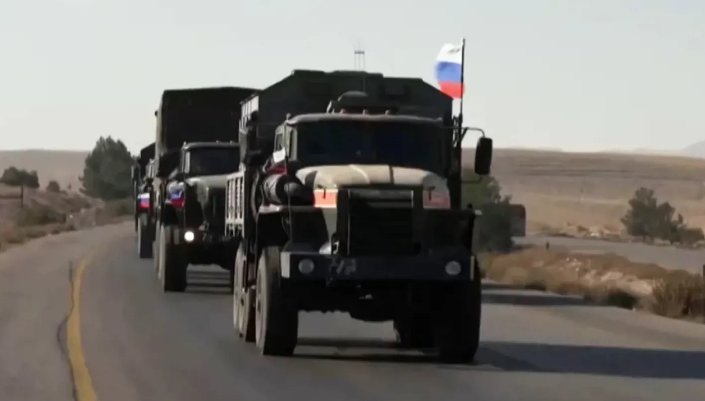 ووفق الصحيفة: "تُظهِر لقطات من سوريا جحافل من قوات بوتين تفر من البلاد في شاحنات عسكرية بعد عقد من إراقة الدماء.".
