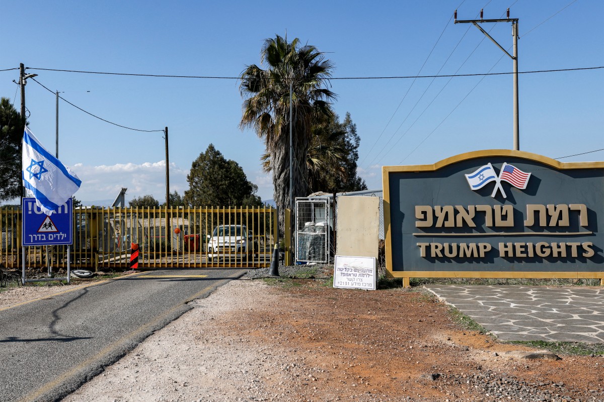 يوجد علمان إسرائيلي وأميركي على لافتة مدخل مستوطنة "ترامب هايتس" (مرتفعات ترامب) على اسم دونالد ترامب امتنانا له لاعترافه في العام 2019 بضم إسرائيل للهضبة ذات الموقع الاستراتيجي، لتكون الولايات المتحدة الدولة الأولى والوحيدة حتى الآن التي أقدمت على هذه الخطوة.