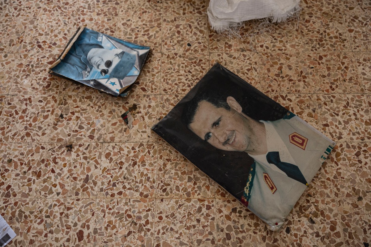 صورة لبشار الأسد على الأرض. (أ ف ب)