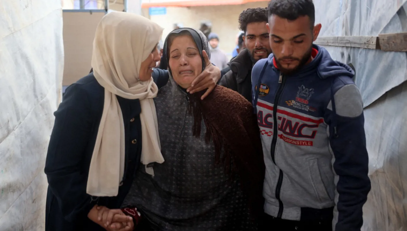 امرأة تنعى أحبائها الذين قُتلوا في غارة إسرائيلية على مخيم المغازي للاجئين وسط قطاع غزة (أ ف ب)