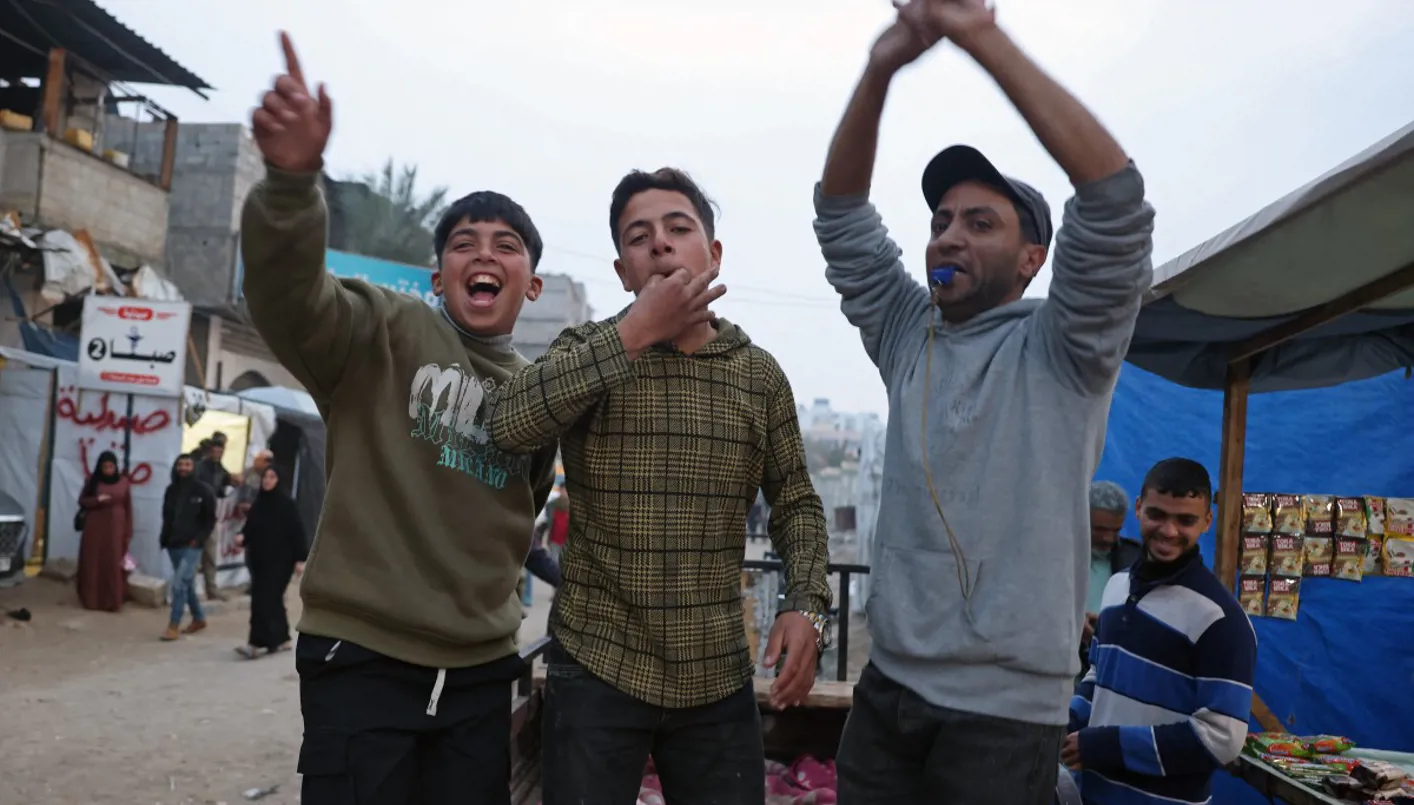 فلسطنيون يحتفلون في خان يونس (ا ف ب)