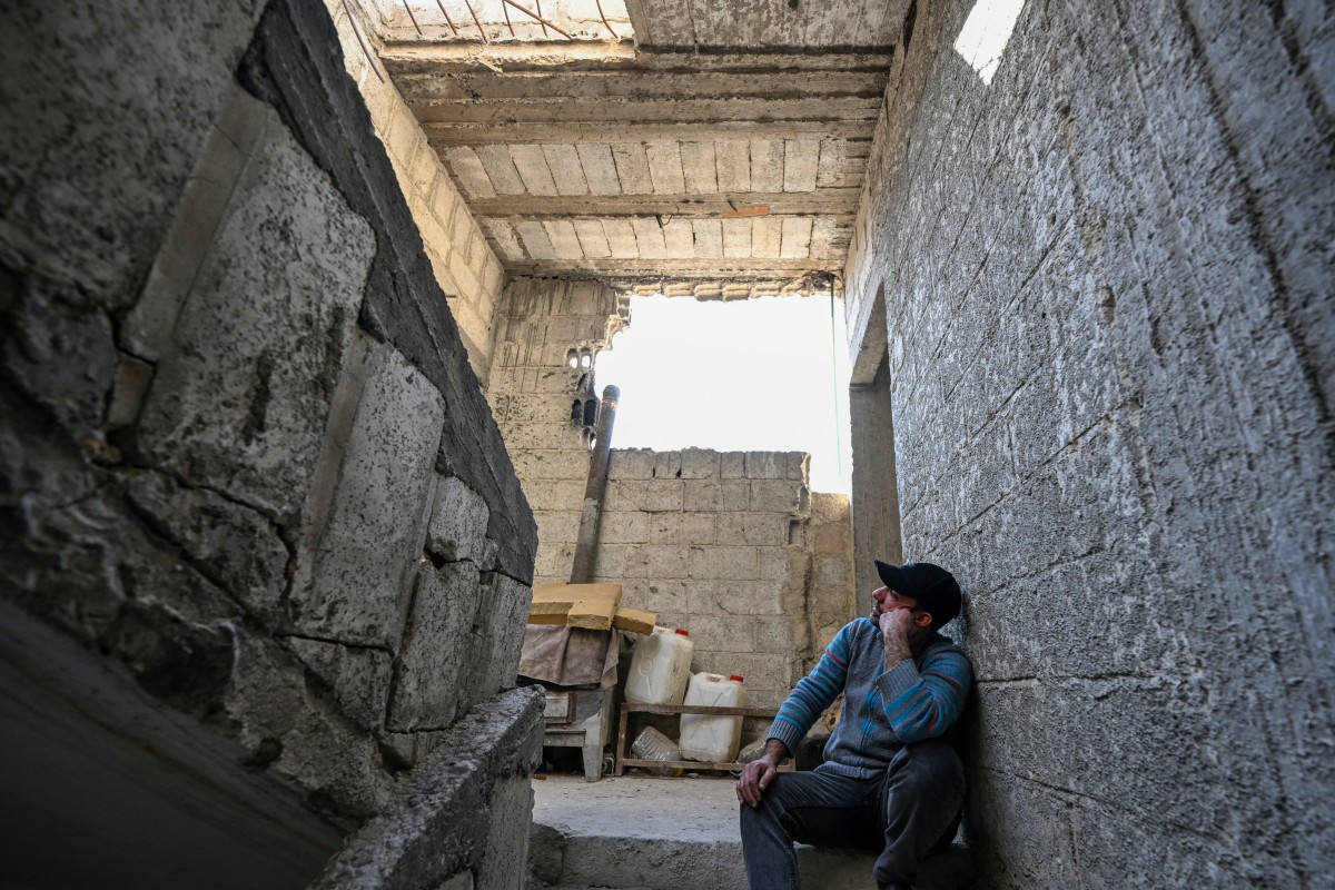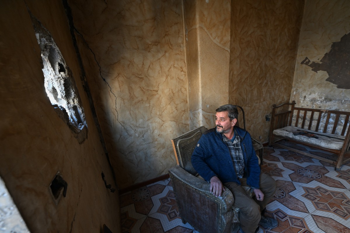 يقف أحمد الذي يعمل بأجر يومي، في ما كانت سابقاً غرفة نومه، وهو ينظر إلى المباني المجاورة المنهارة والمدمّرة كصناديق من الكرتون الممزّق.