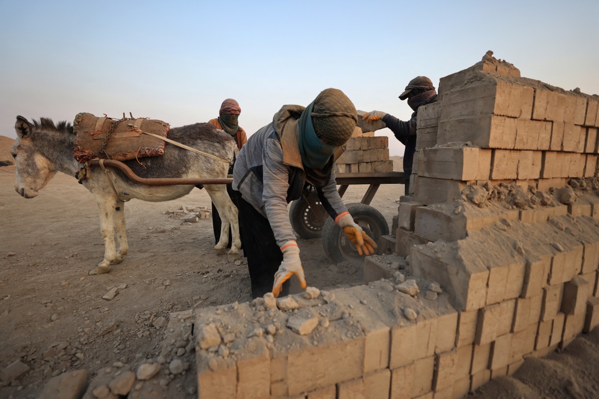 منذ ساعات الفجر الأولى، تحمّل داليا غالي (17 عاما) وأختها رقيّة حجارة الطابوق على ظهر حمار في معمل مخصّص لإحدى الصناعات الأكثر تلويثا في العراق، متمسكّة بوظيفة بعيدا عن المدرسة التي يجب أن يرتادها من هم في سنّها، من أجل البقاء وعائلتها على قيد الحياة.