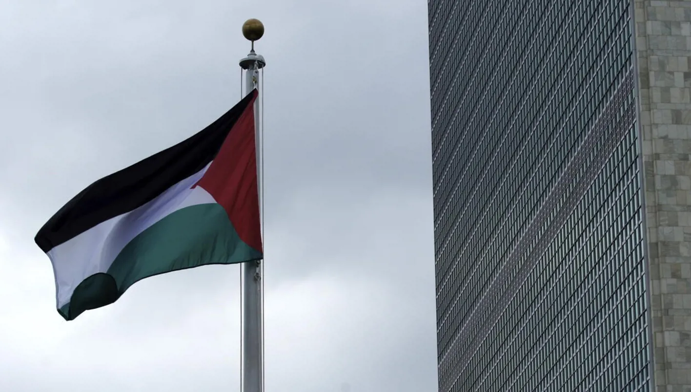 علم فلسطين أمام مقر الأمم المتحدة.