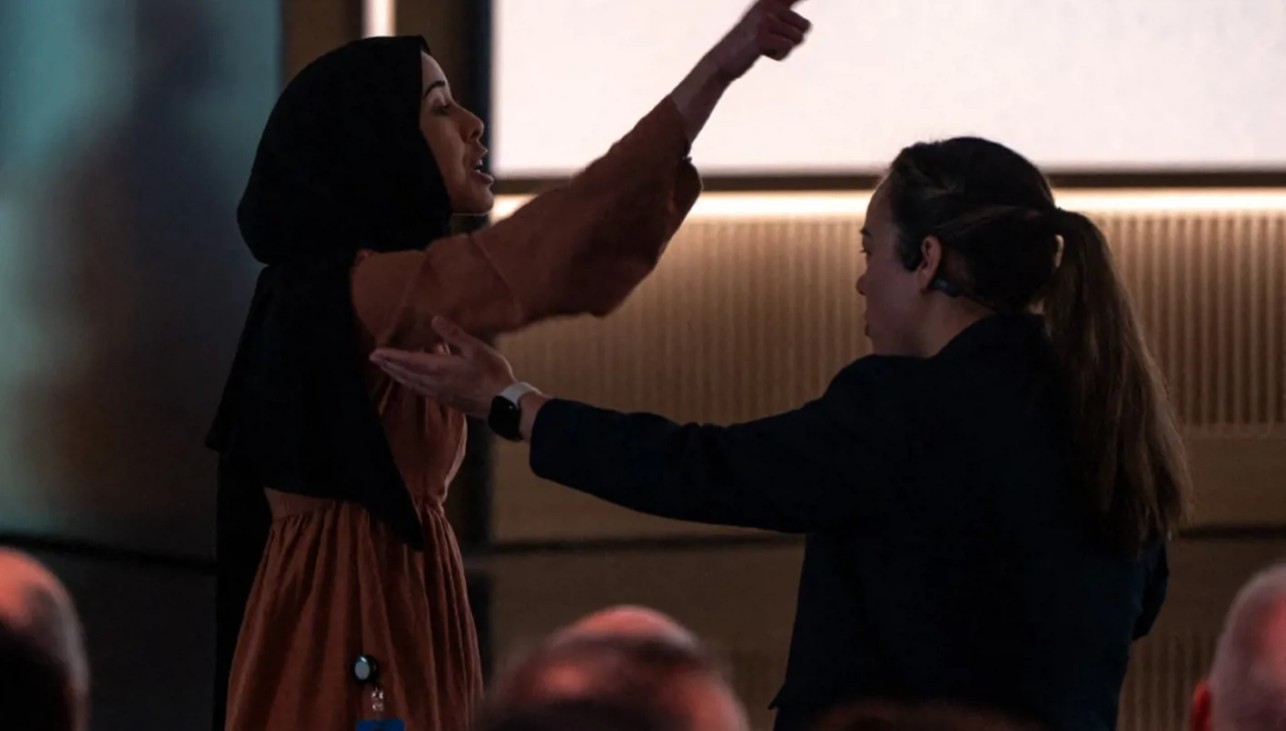 قاطعت موظفة مؤيدة للفلسطينيين كلمة المدير التنفيذي لقطاع الذكاء الاصطناعي في شركة مايكروسوفت مصطفى سليمان احتجاجاً على علاقات الشركة مع إسرائيل.