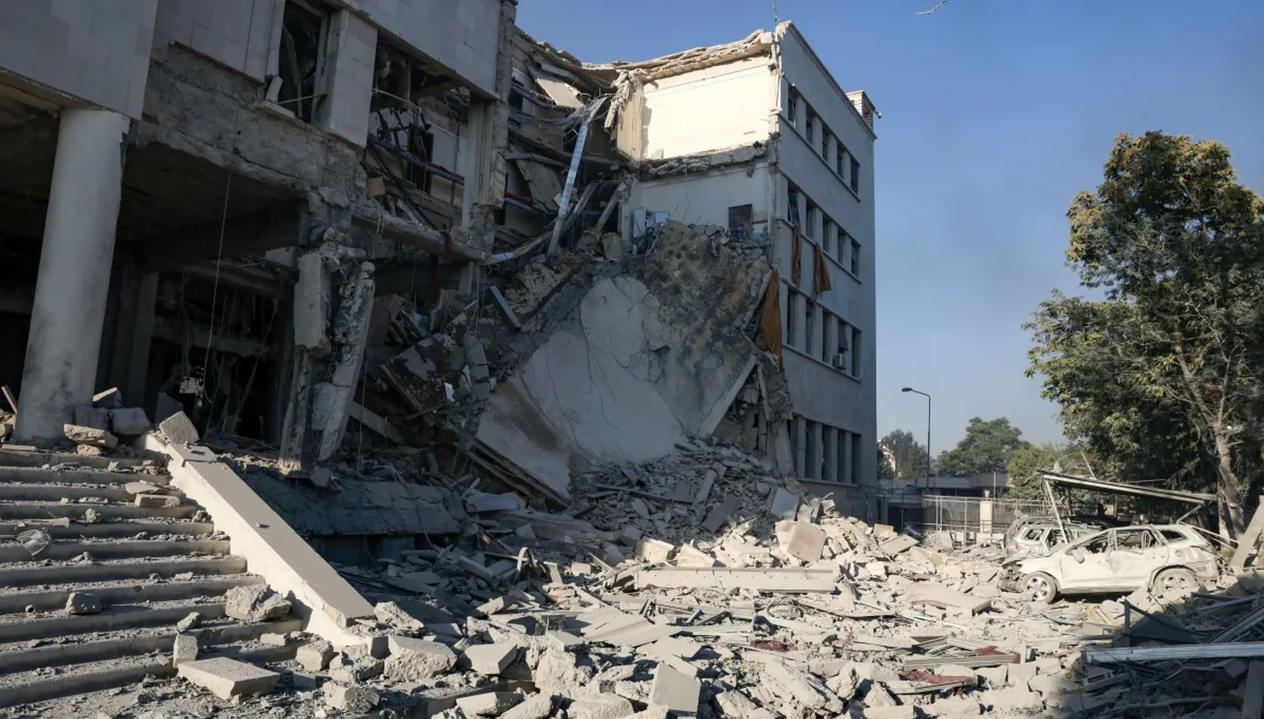 صورة تظهر حجم الدمار الذي خلفته الغارات الإسرائيلية على مقر الجيش السوري ووزارة الدفاع في دمشق (أ ف ب)