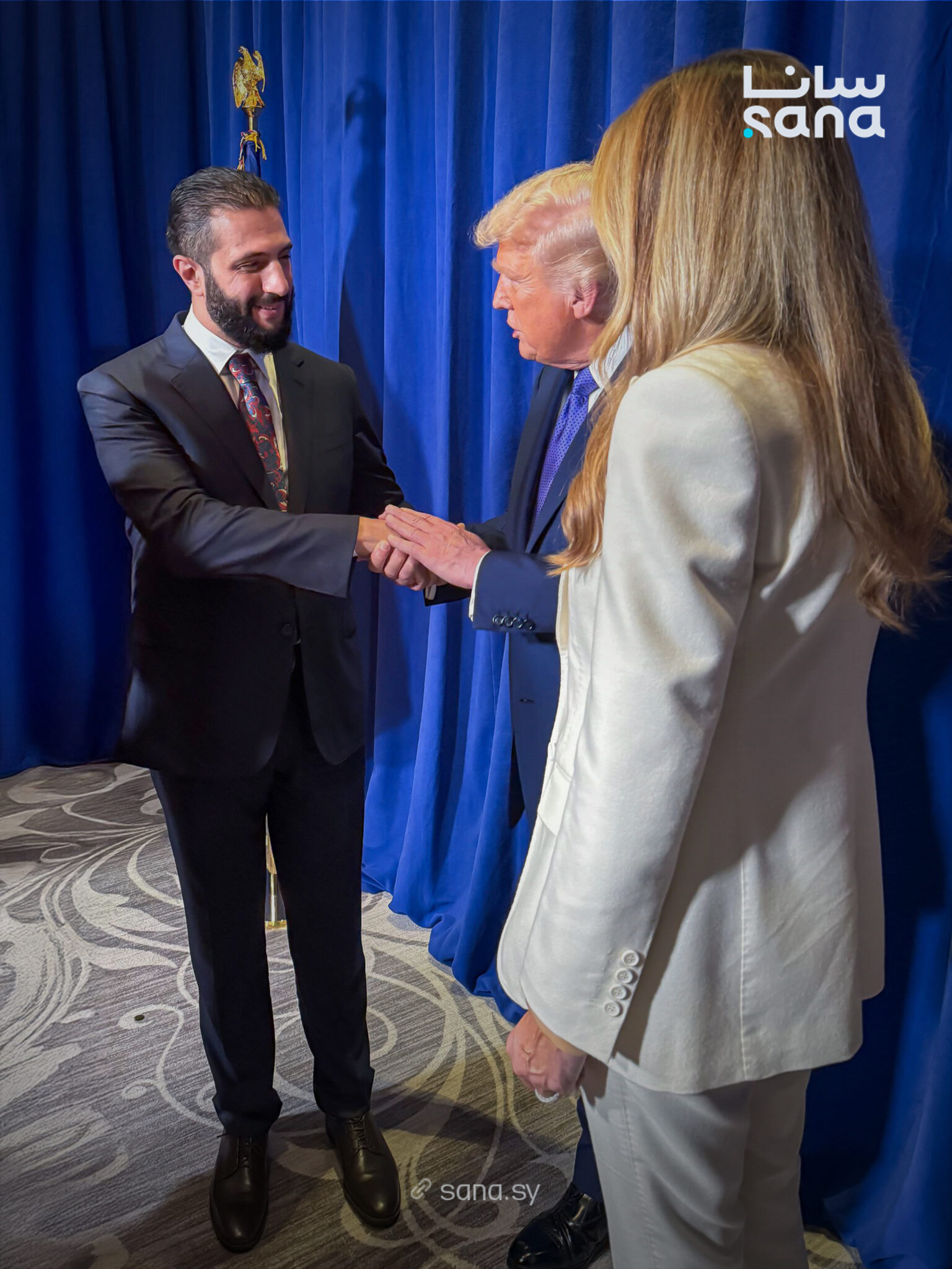 ونشرت الوكالة صوراً للشرع وهو يصافح ترامب، بحضور السيدة الأولى ميلانيا ترامب، دون أن تذكر المزيد من التفاصيل.