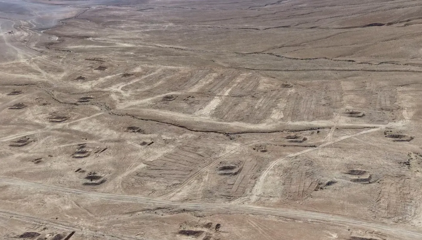 صورة ملتقطة بطائرة بدون طيار لموقع مقبرة جماعية في الصحراء بالضمير (رويترز).