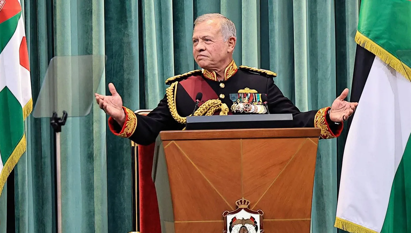 أكّد العاهل الأردني الملك عبد الله الثاني، في خطاب العرش أمام البرلمان، اليوم الأحد، رفضه استمرار الانتهاكات الإسرائيلية في الضفة الغربية، مجدداً موقف الأردن الثابت في دعم القضية الفلسطينية.