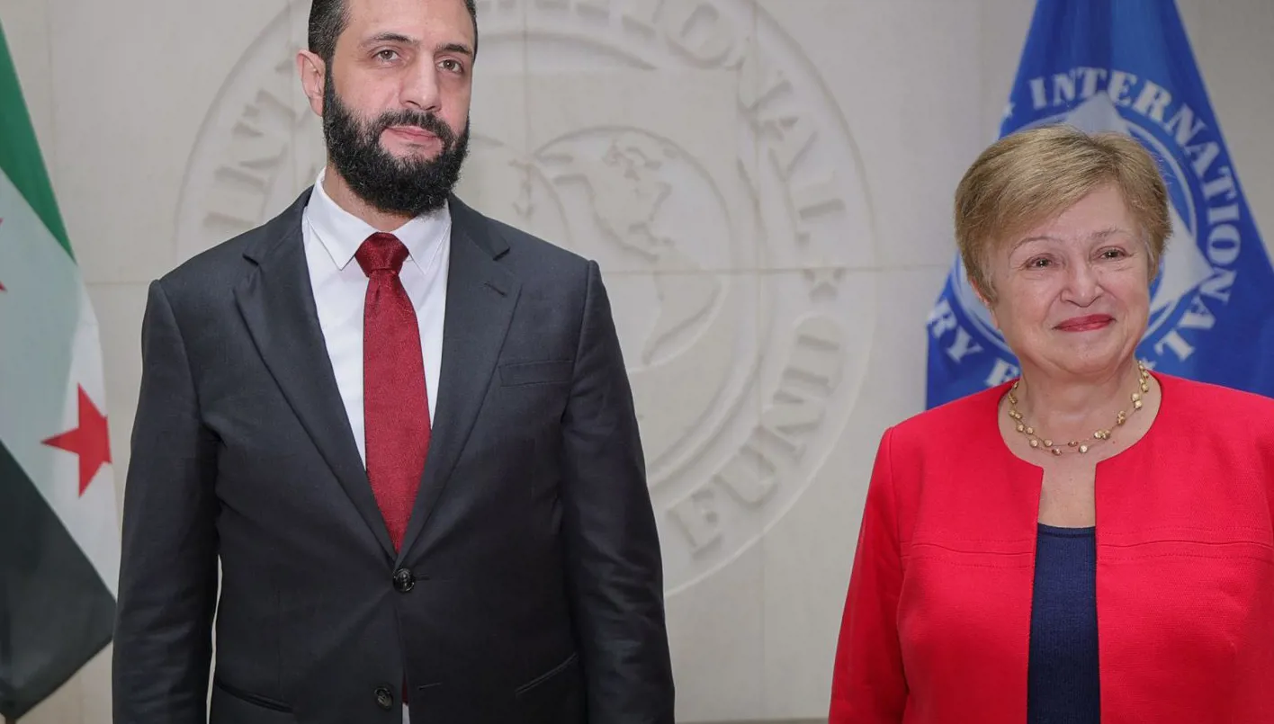 اجتمع الرئيس أحمد الشرع اليوم في مقر صندوق النقد الدولي في واشنطن، مع كريستالينا جورجييفا، المديرة العامة لصندوق النقد الدولي، بحضور وزير الخارجية والمغتربين أسعد حسن الشيباني.