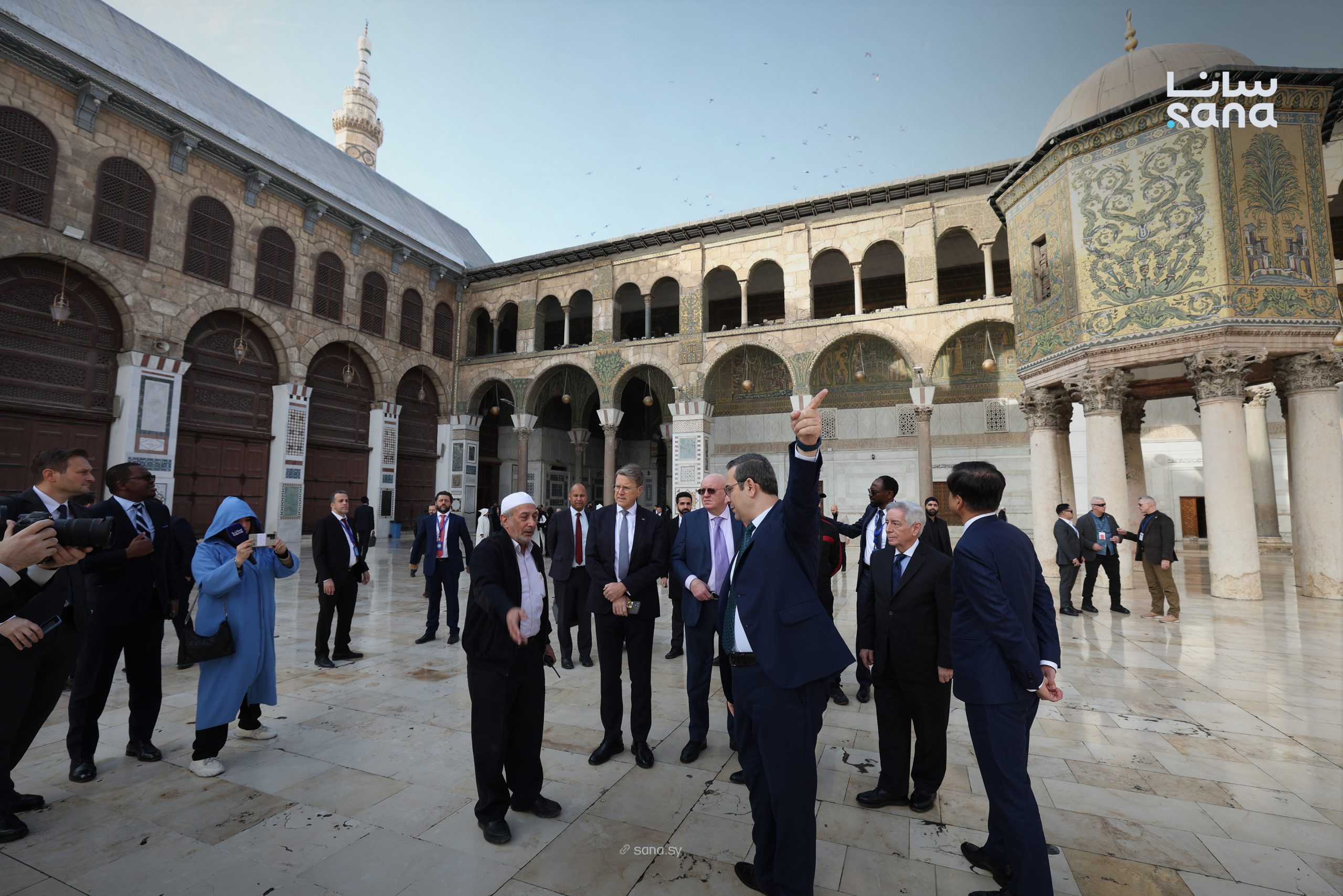 والتقى الوفد الرئيس  أحمد الشرع وعدداً من المسؤولين السوريين في قصر الشعب، بعد جولة صباحية شملت زيارة حي جوبر، أحد أكبر الأحياء المدمرة قرب دمشق، وزيارة خاطفة للمدينة القديمة والجامع الأموي.