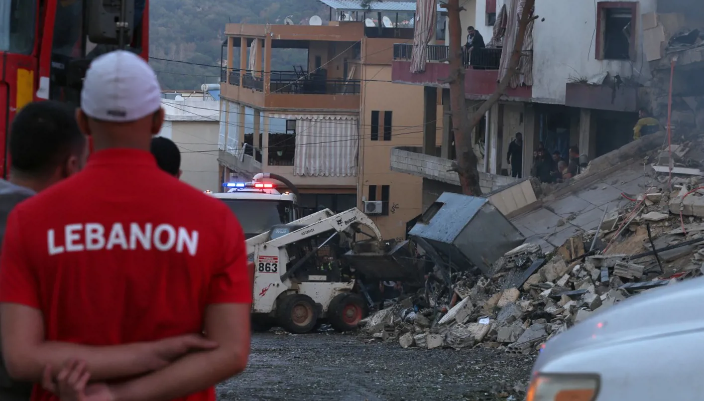 رجال الإنقاذ يبحثون عن ناجين بعد غارة إسرائيلية استهدفت قرية جباع، جنوبي لبنان. (أ ف ب)