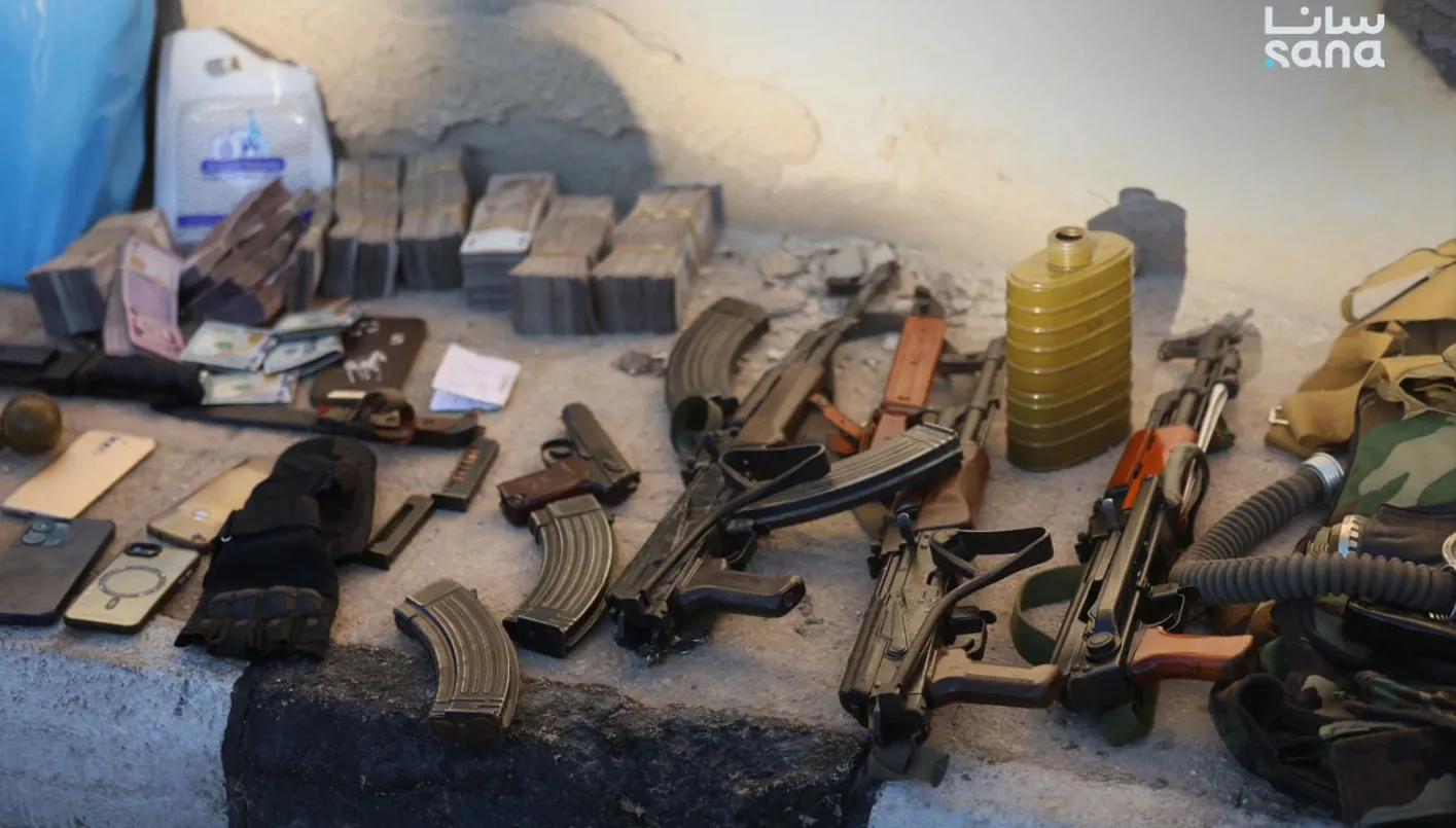 وقالت الداخلية السورية: "أسلحة متنوعة وذخائر مختلفة، وأموال مُعدّة لتمويل أنشطة إرهابية، ضبطتها قيادة الأمن الداخلي في محافظة ريف دمشق، بالتعاون مع جهاز الاستخبارات العامة، خلال عملية أمنية استهدفت تفكيك خلية إرهابية تتبع تنظيم داعش الإرهابي في مدينة داريا بريف المحافظة".