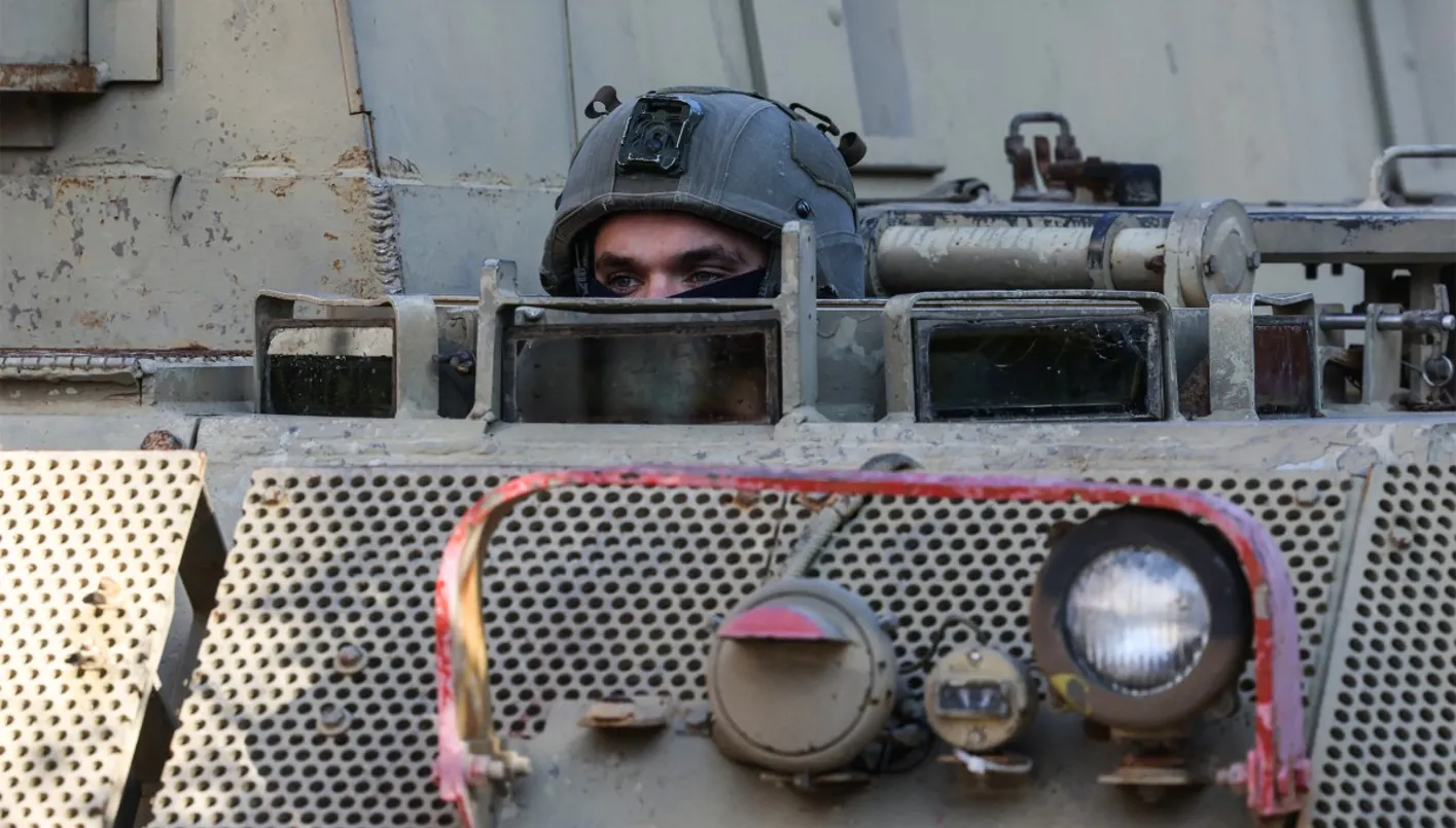 جندي إسرائيلي يجلس في مركبة مدرعة. (أ ف ب)