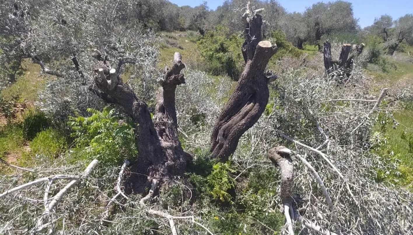 قطع مستوطنين لـ 21 شجرة زيتون يتجاوز عمرها 50 عاماً في منطقة "سهل مرج سيع" برام الله