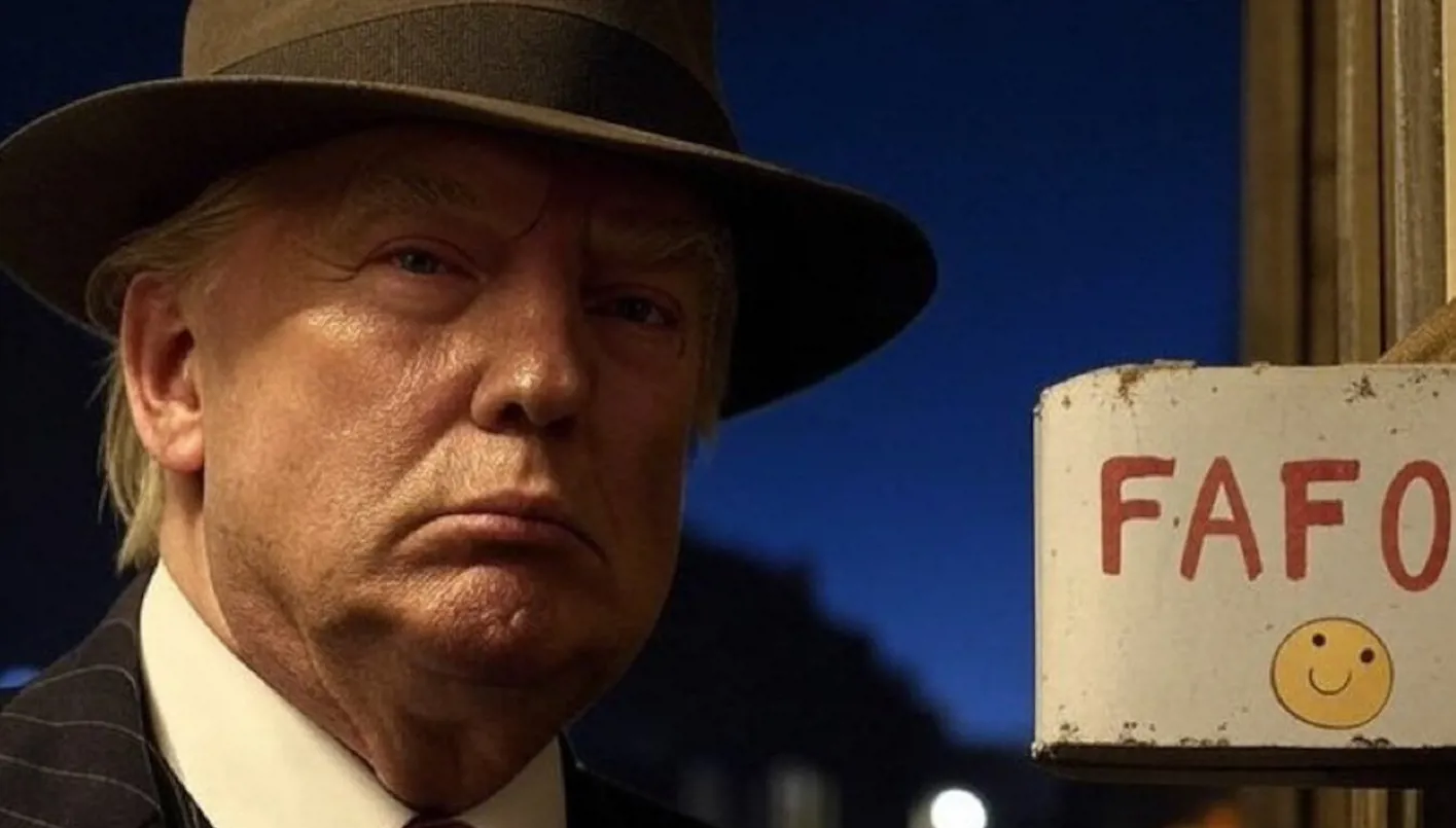 ترامب بجوار كلمة "فافو" التي تعني أن للفعل عواقبه - (فايسبوك)
