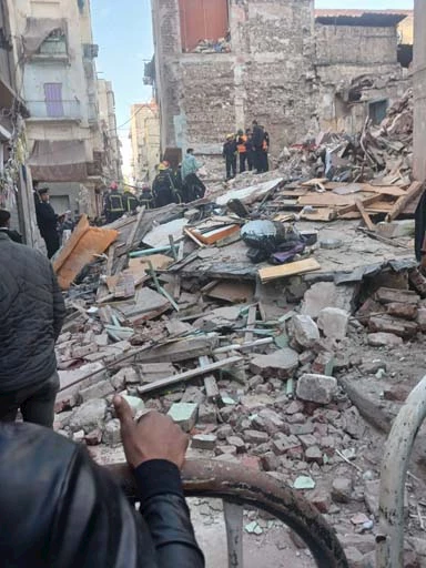 انهار مبنى مأهول بالسكان في منطقة اللبان بحي الجمرك في محافظة الإسكندرية شمال مصر، ما أسفر عن سقوط مصابين.