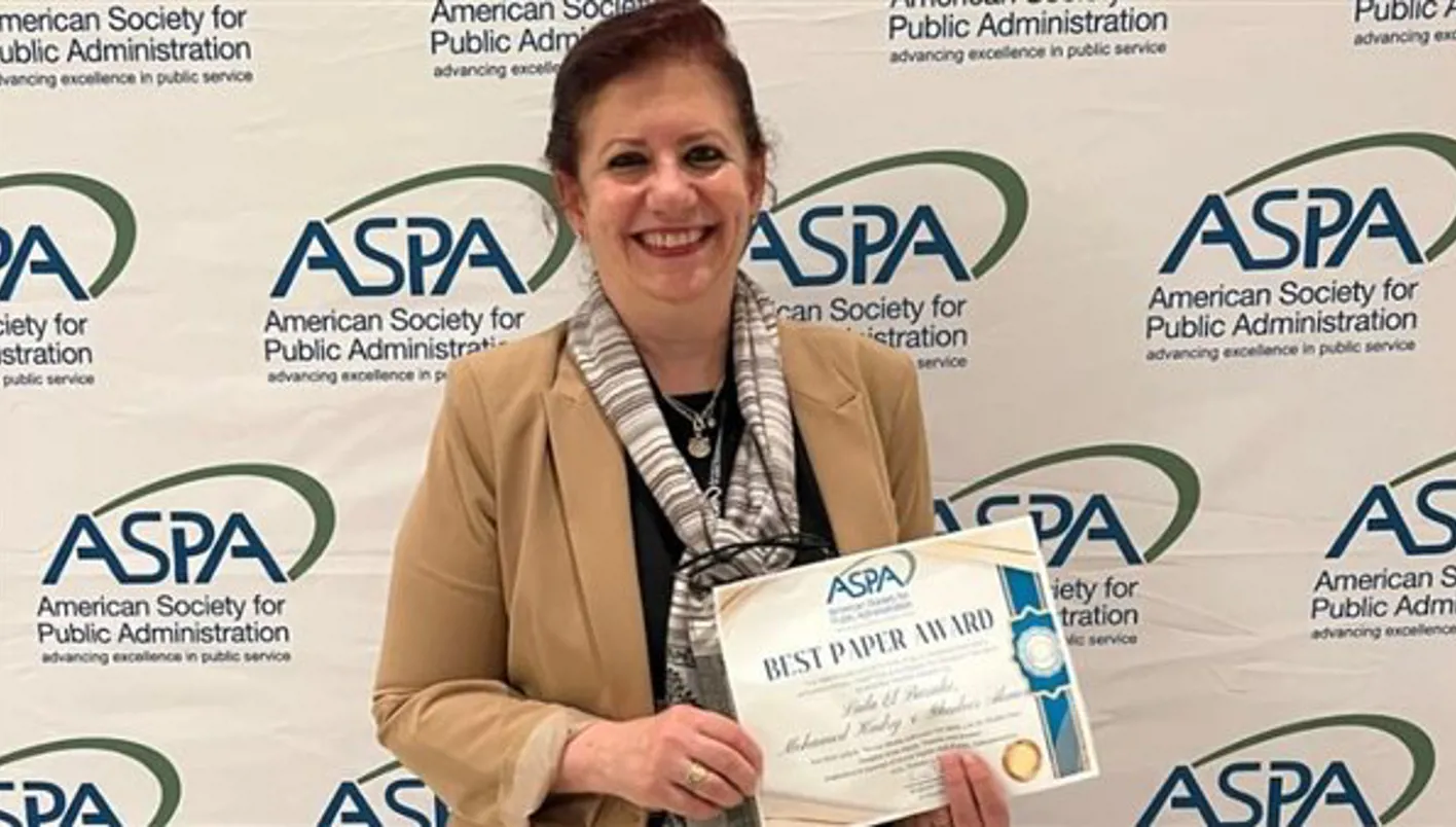 كما حصلت على جائزة أفضل ورقة بحثية من الجمعية الأميركية للإدارة العامة 2025.