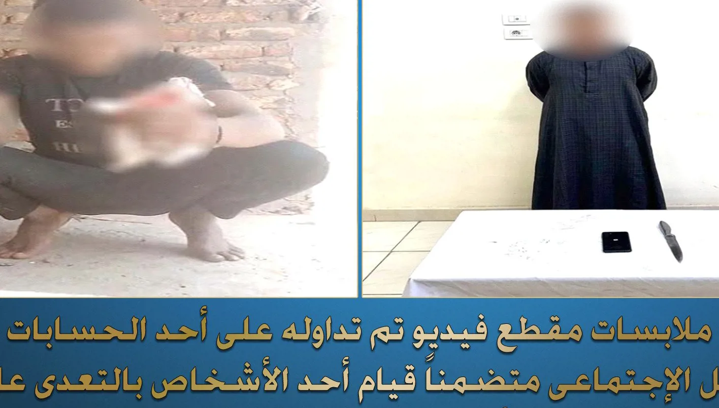 وزارة الداخلية المصرية أعادت نشر صورة (مموهة) من مقطع الفيديو المتداول مؤكدة إلقاء القبض على الشخص الذي ظهر في المقطع وصورة أخرى له (مموهة) بعد توقيفه.