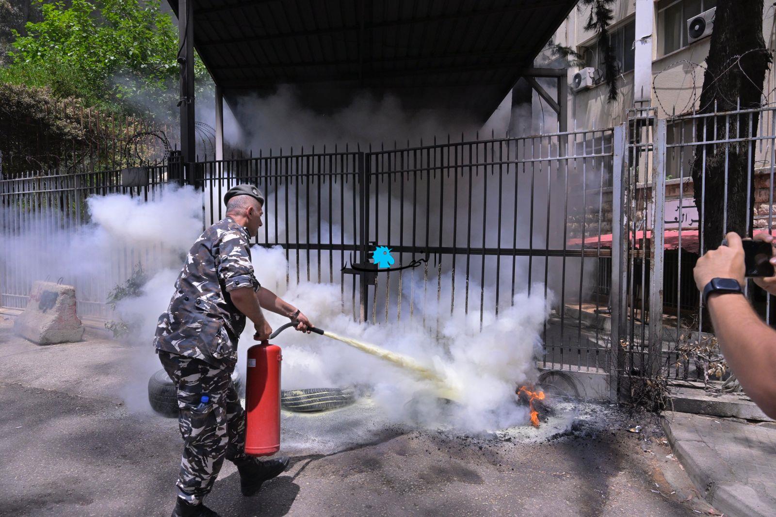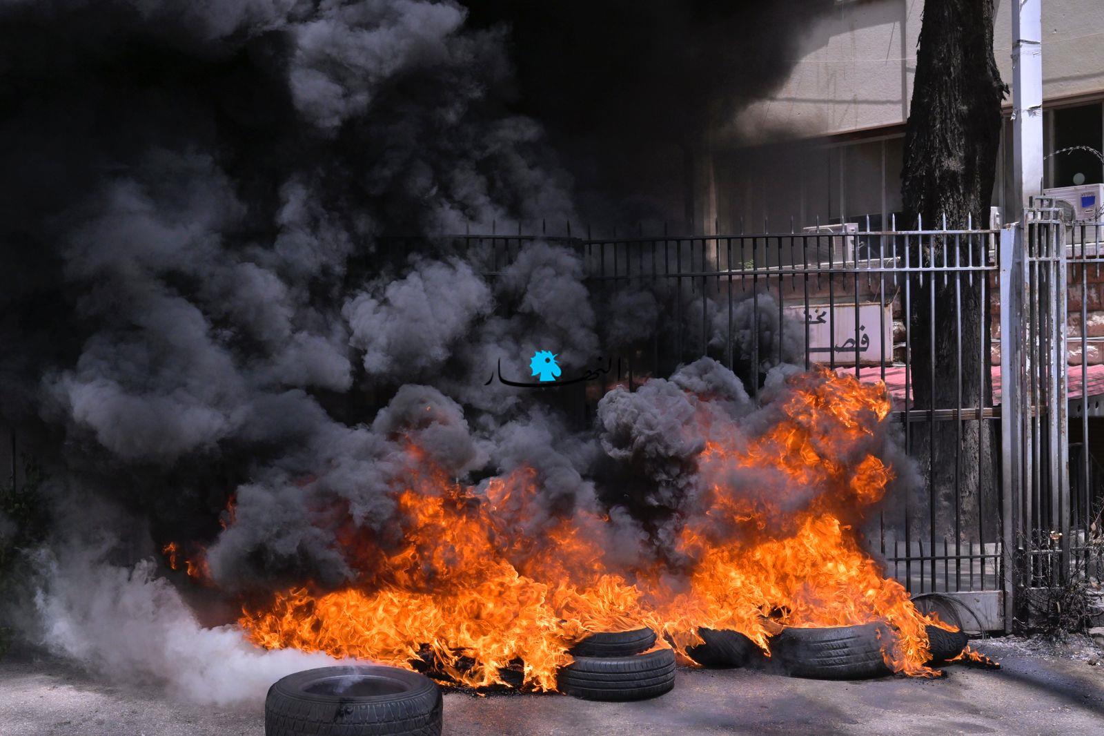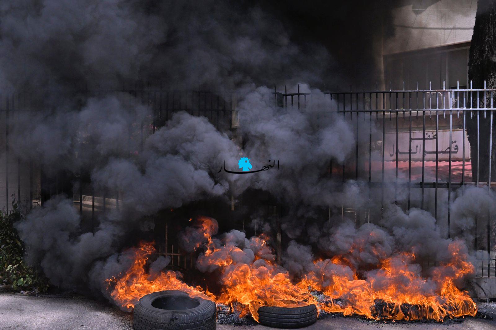 إشعال إطارات من قبل أهالي ضحايا انفجار 4 آب أمام مدخل قصر العدل (فيديو - صور)