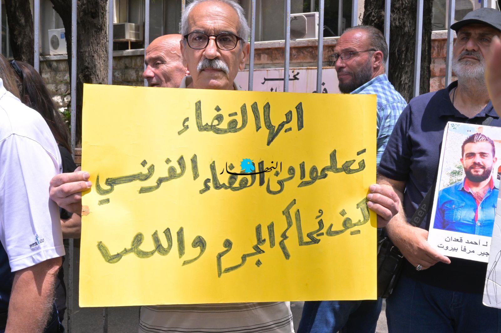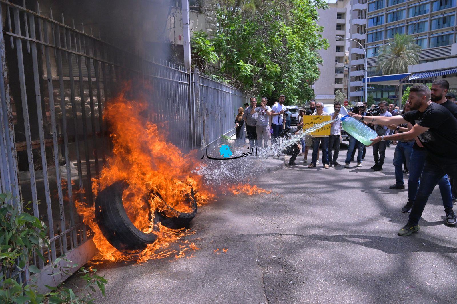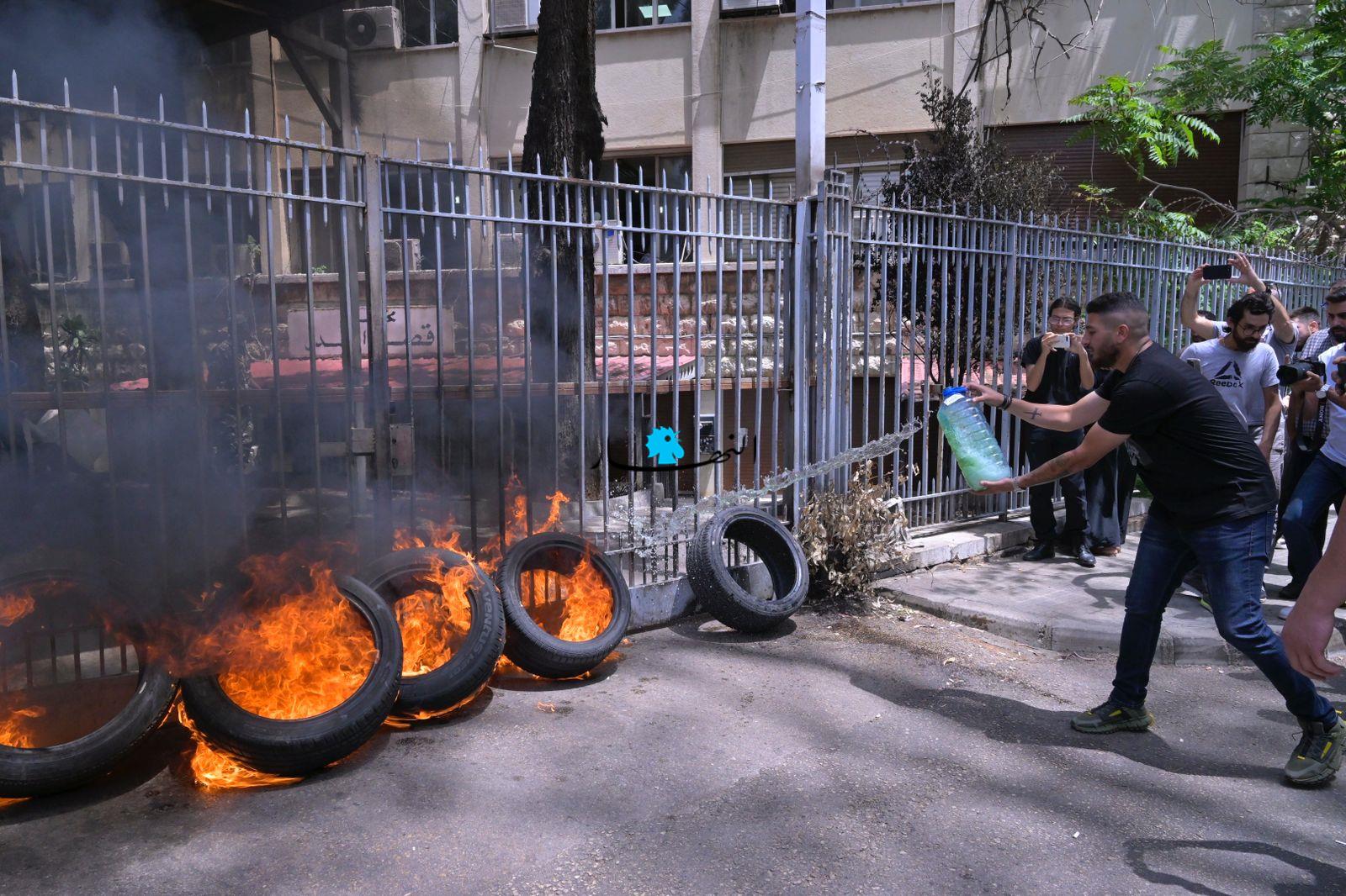 إشعال إطارات من قبل أهالي ضحايا انفجار 4 آب أمام مدخل قصر العدل (فيديو - صور)