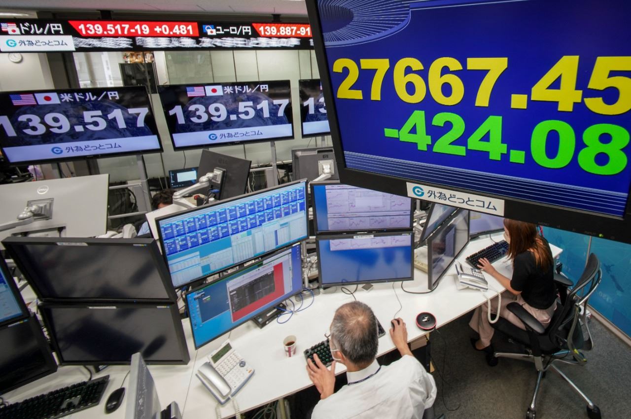 لوحة الكترونية تعرض سعر سهم بورصة طوكيو في دار وساطة للصرف الأجنبي في طوكيو (1 ايلول 2022، أ ف ب).