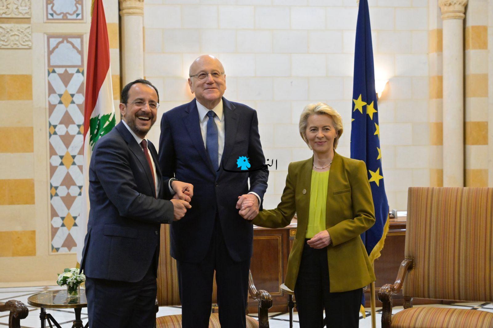 وبدأت المحادثات الموسّعة بين ميقاتي، وخريستودوليدس، وفون دير لاين.