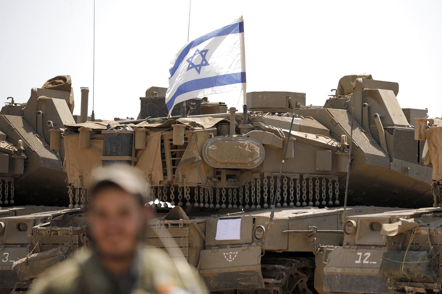 دبابات قتاليّة إسرائيليّة مركونة في موقع في مرتفعات الجولان (29 آب 2022 - أ ف ب).