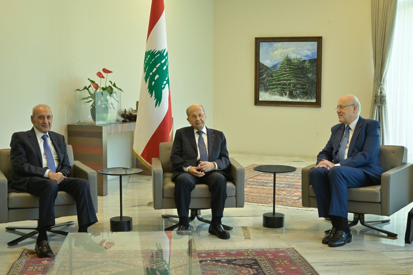 لقاء ثلاثي بين عون وبري وميقاتي في بعبدا للبحث في اقتراح هوكشتاين.