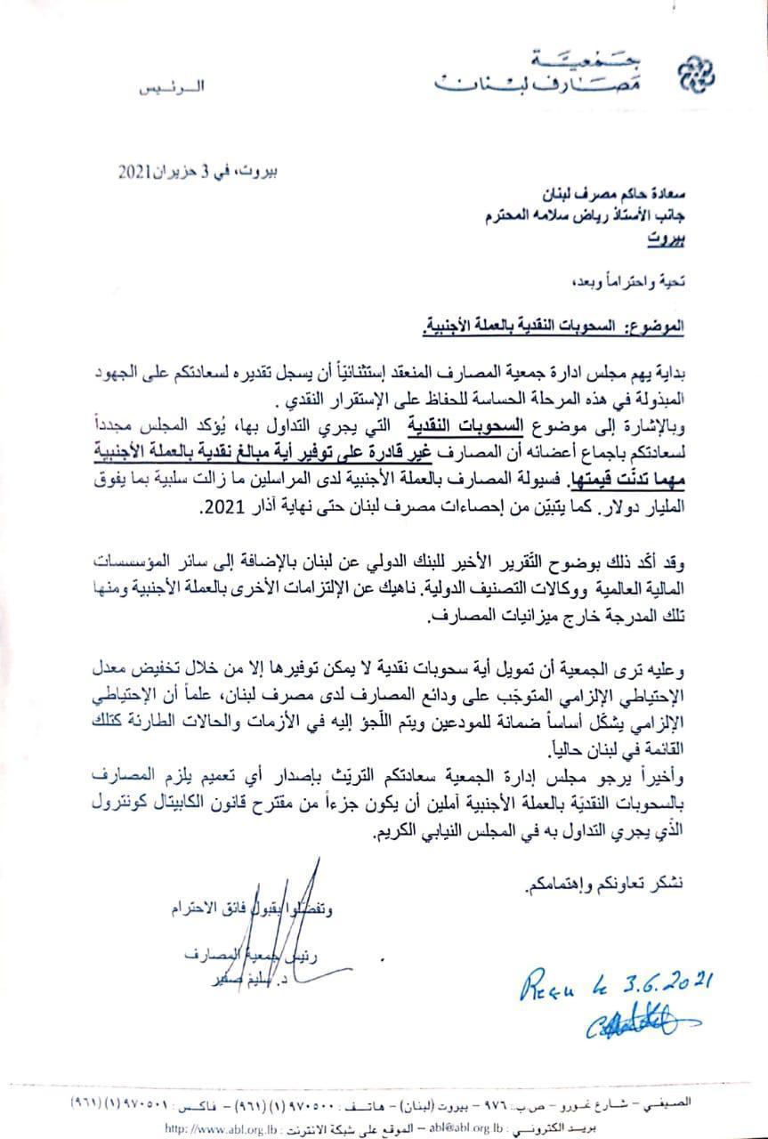 وكانت جمعية المصارف استبقت بيان المركزي، برسالة اشارت فيها الى أن المصارف الأعضاء جميعها "غير قادرة على توفير أيّ مبالغ بالعملة الأجنبية مهما تدنّت قيمتها"، وإنّ "السيولة بالعملة الأجنبية لدى المصارف المراسلة لا تزال سلبية بما يفوق المليار دولار".