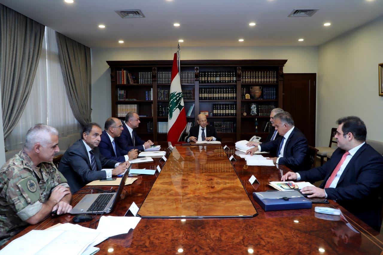 من جهته، بحث رئيس الجمهورية ميشال عون مع وزير الدفاع موريس سليم آخر المعطيات المتصلة بالمفاوضات الجارية لترسيم الحدود البحرية والجنوبية في ضوء الملاحظات التي وضعها الجانب اللبناني على العرض الذي قدّمه الوسيط الأميركي آموس هوكشتاين، مؤكداً أنّ "هذه الملاحظات تضمن حقوق لبنان في التنقيب عن النفظ والغاز في الحقول المحددة في المنطقة الاقتصادية الخالصة، كما تمنع أيّ تفسيرات لا تنطبق على الاطار الذي حدّده لبنان لعملية الترسيم وخلال المفاوضات التي استمرت أشهراً".