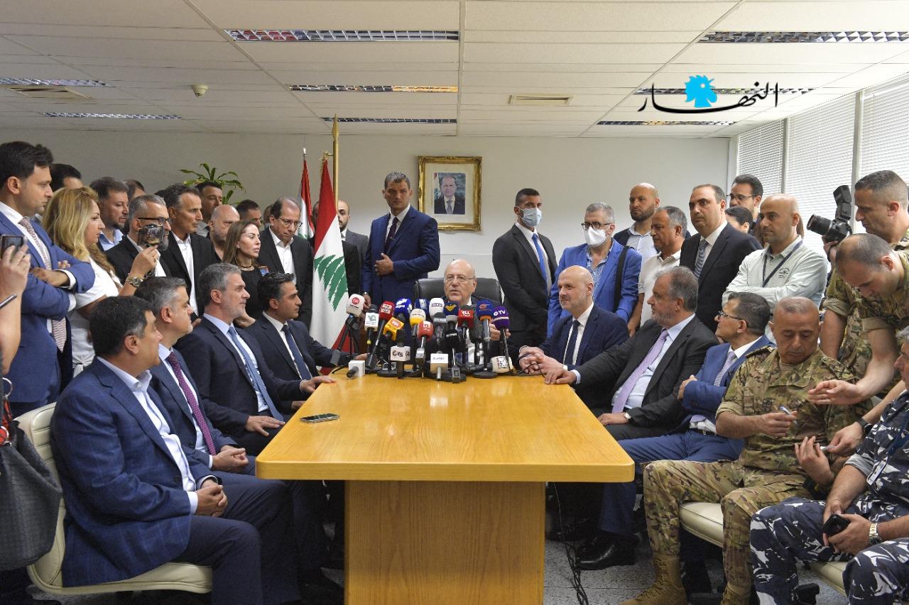 وعن موضوع ترسيم الحدود البحريّة، قال: "لن أتقاعس بدعوة مجلس الوزراء عند الضّرورة، وسأجتمع مع رئيس الجمهورية، وأنا غير مستعدّ أن أُعرّض لبنان لأيّ مخاطر، والموضوع يُحل بدبلوماسية عالية".