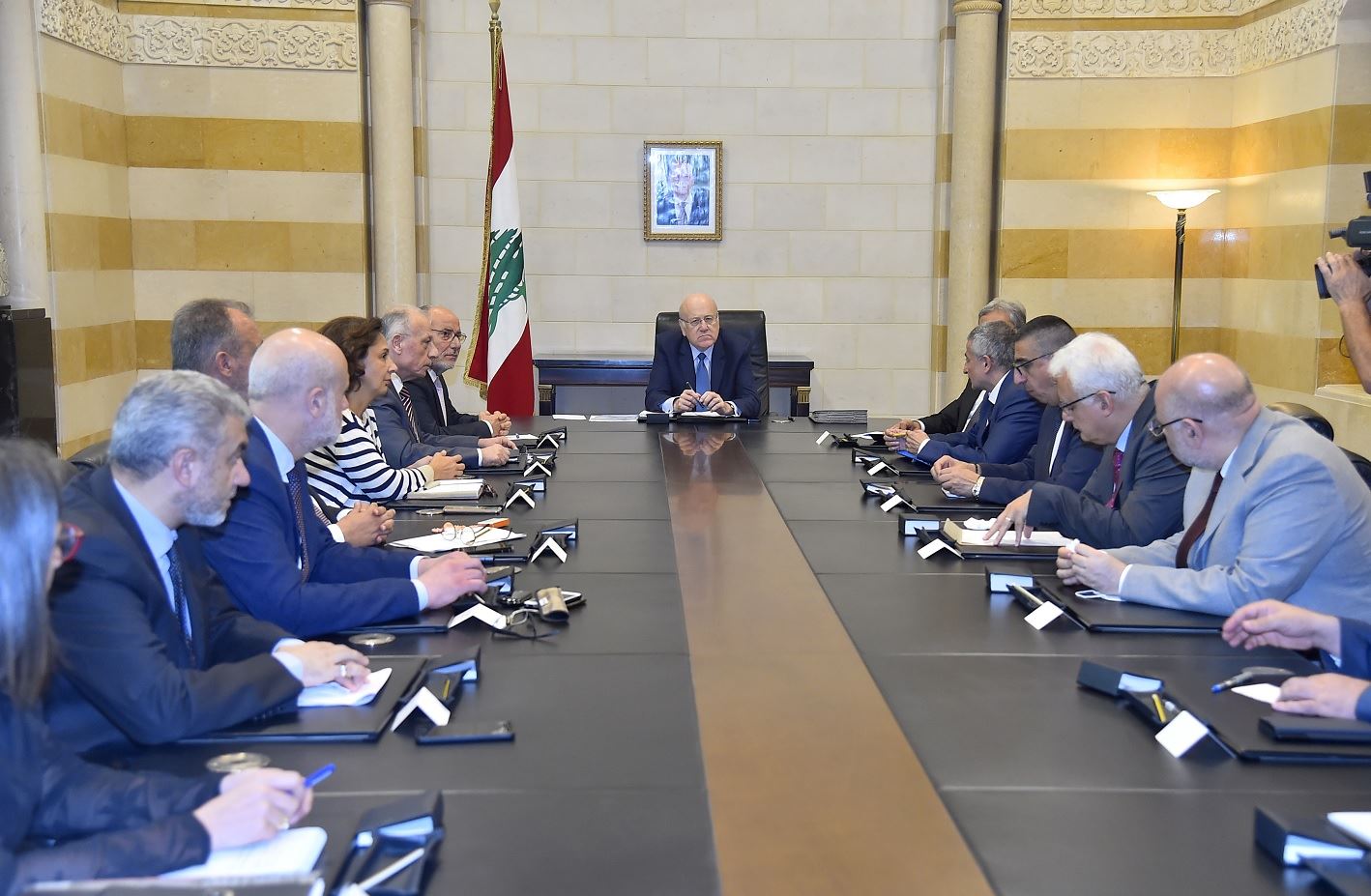 رئيس حكومة تصريف الأعمال نجيب ميقاتي مترئساً اجتماع "اللجنة الوزارية المكلفة معالجة تداعيات الأزمة المالية على سير المرفق العام" (دالاتي ونهرا).