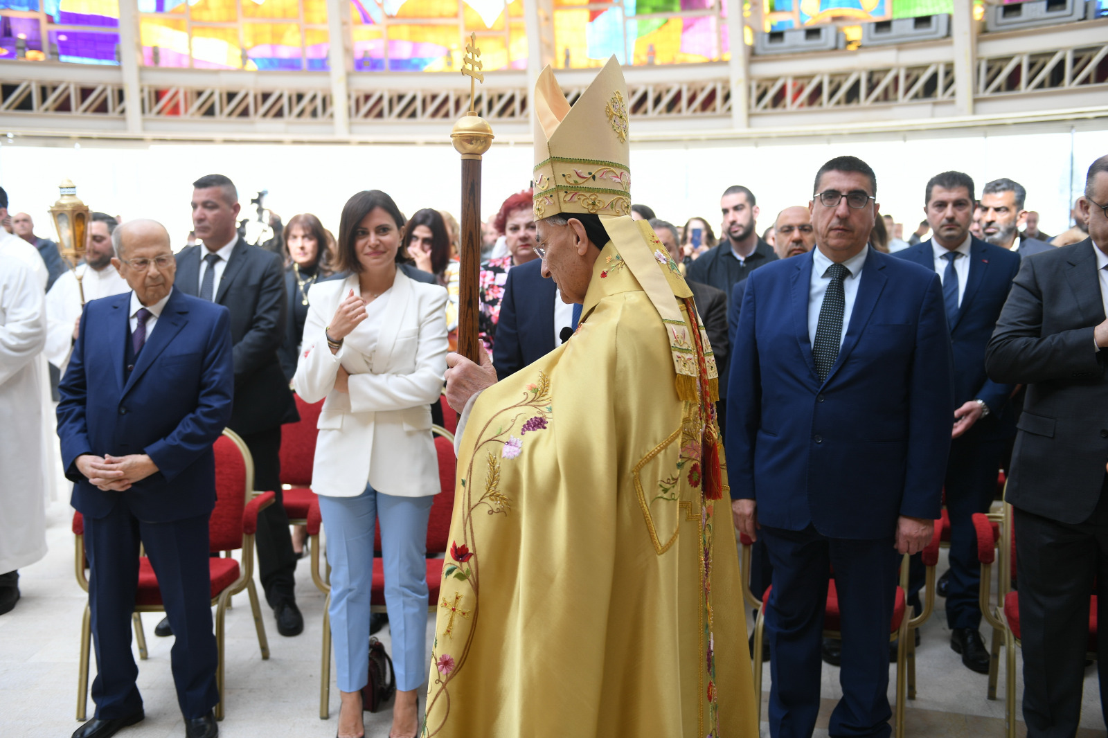 البطريرك الماروني الكاردينال مار بشارة بطرس الراعي في قدّاس عيد الفصح.