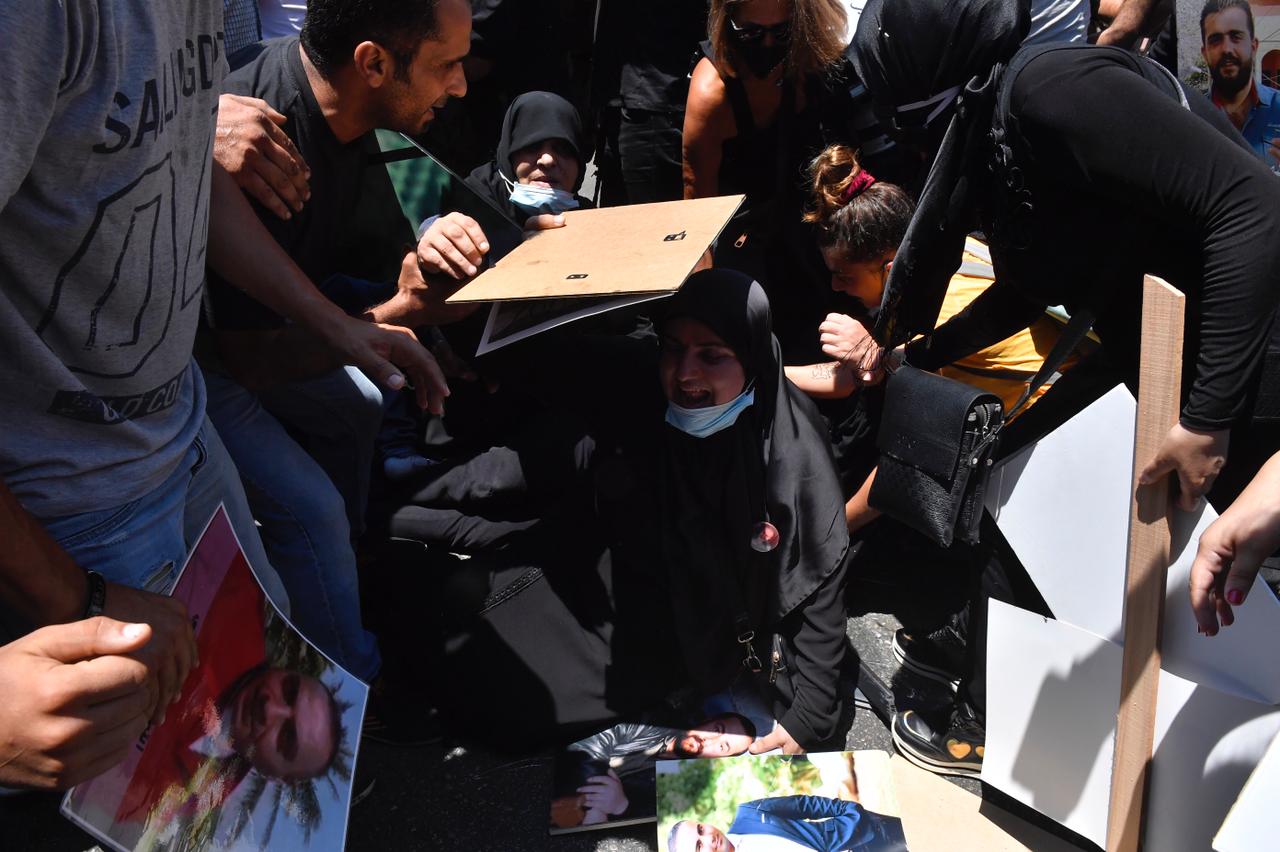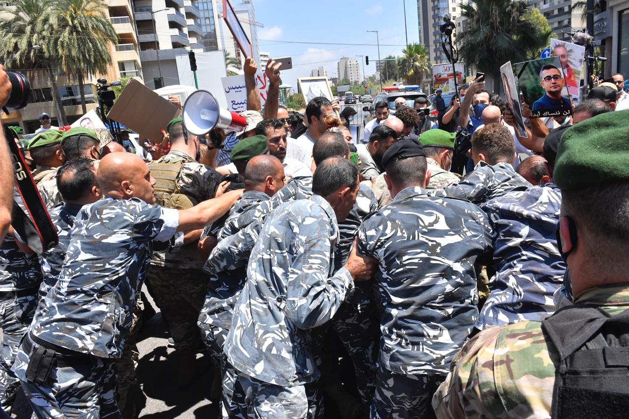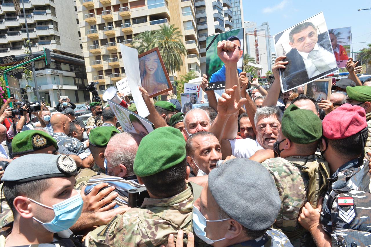 حاول بعض الأهالي تخطّي الحاجز الأمني أمام القصر، فواجههم عناصر الحماية، ما أدّى إلى حالة تدافع بين أهالي الشهداء والقوى الأمنية من جيش وقوى أمن، وإلى إصابة إحدى السيّدات بالإغماء وصور الضحايا المرفوعة بالتكسير.