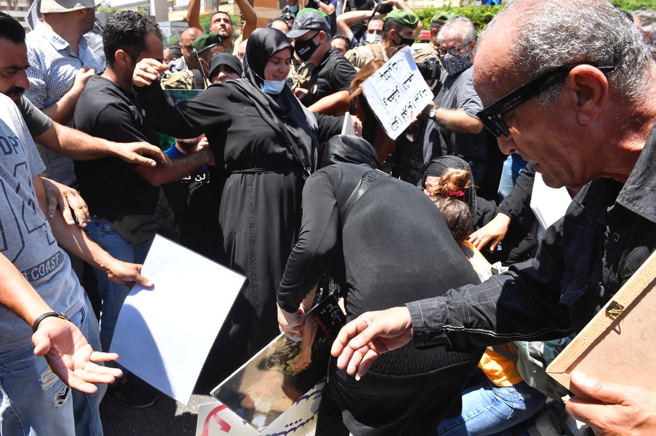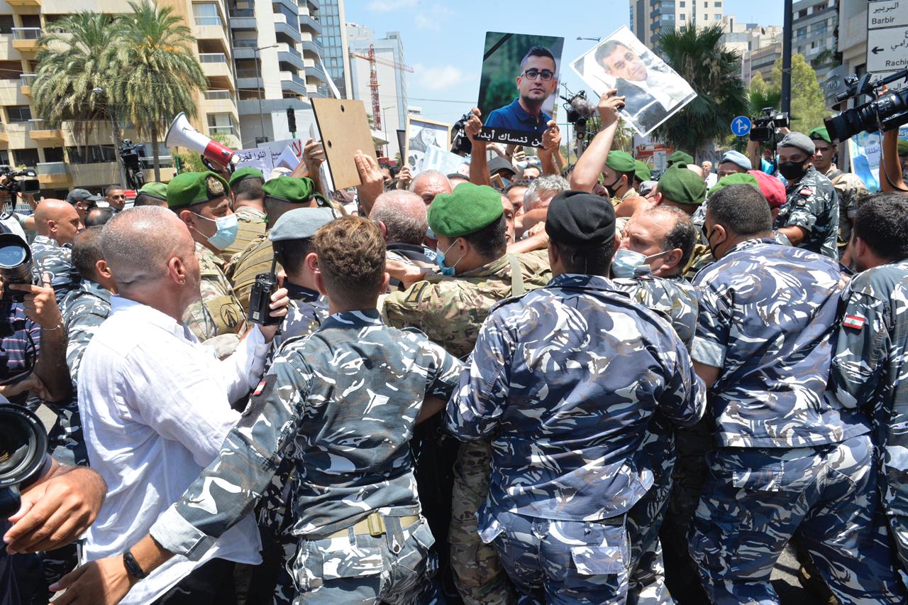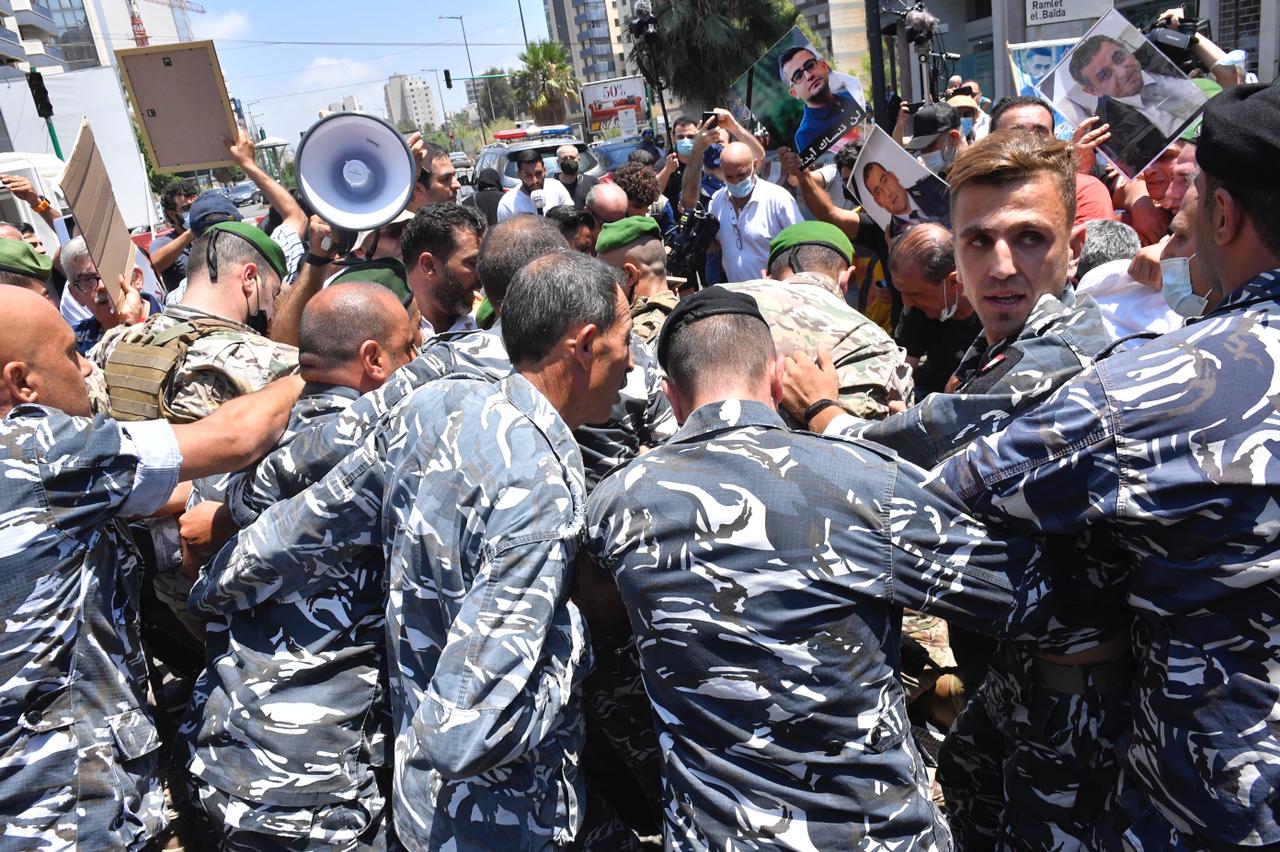 حاول بعض الأهالي تخطّي الحاجز الأمني أمام القصر، فواجههم عناصر الحماية، ما أدّى إلى حالة تدافع بين أهالي الشهداء والقوى الأمنية من جيش وقوى أمن، وإلى إصابة إحدى السيّدات بالإغماء وصور الضحايا المرفوعة بالتكسير.