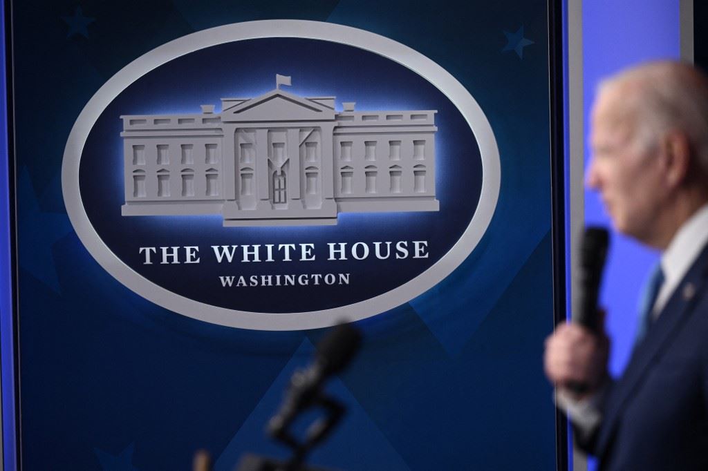 بايدن متكلما خلال لقاء في مبنى أيزنهاور بجوار البيت الأبيض في واشنطن (8 ك1 2022، أ ف ب).