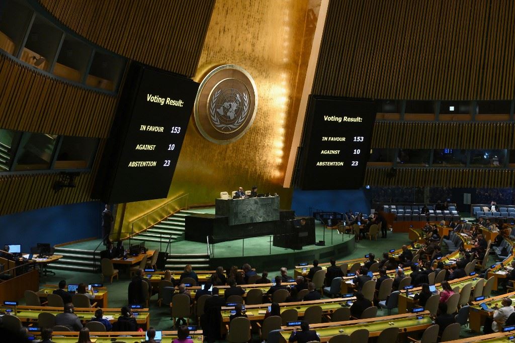 وقرارات الجمعية العامة ليست ملزمة لكن لها ثقل سياسي وتُعبّر عن وجهة نظر عالمية بشأن الحرب.