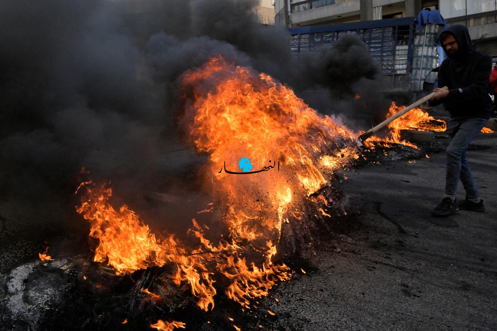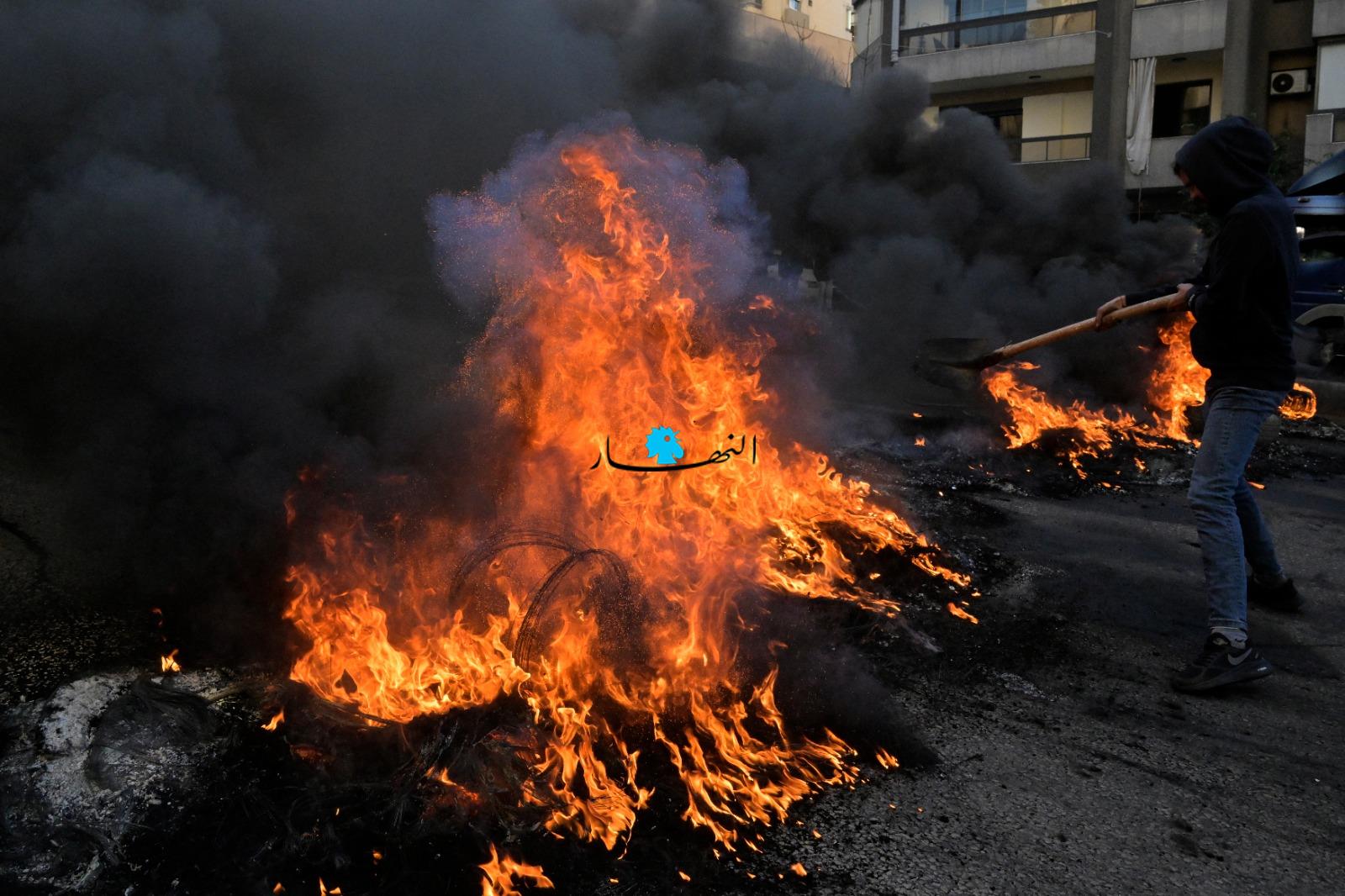 من سليم سلام إلى البداوي، إطارات مشتعلة وطرق مقطوعة... المشهد بالصور والفيديو