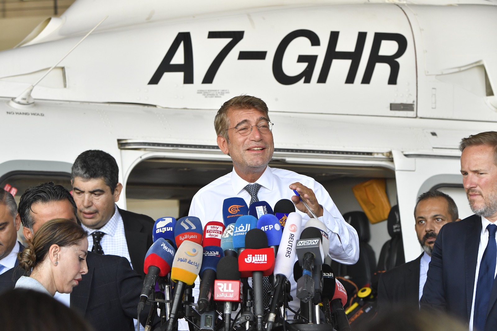 وقام وزيرا الأشغال العامة والنقل والطاقة والمياه في حكومة تصريف الأعمال علي حميه ووليد فياض، بزيارة ميدانية الى القاعدة اللوجستية التي تمّ اعتمادها في مطار رفيق الحريري الدولي- بيروت لإقلاع وهبوط طائرة الهليكوبتر، والمخصصة لتقديم الخدمات من والى منصة الحفر للتنقيب عن النفط والغاز في البلوك رقم 9، في حضور المدير العام للاستكشاف والانتاج في شركة "#توتال" رومان دو لا مارتنير، المدير العام للطيران المدني المهندس فادي الحسن وقائد جهاز أمن المطار العميد فادي كفوري رئيس دائرة الأمن العام في المطار جوني الصيصة وقائد سرية قوى الأمن الداخلي العقيد عزت الخطيب وقادة الوحدات الأمنية والإدارية المعنية في المطار وأعضاء من مجلس ادارة هيئة قطاع البترول.