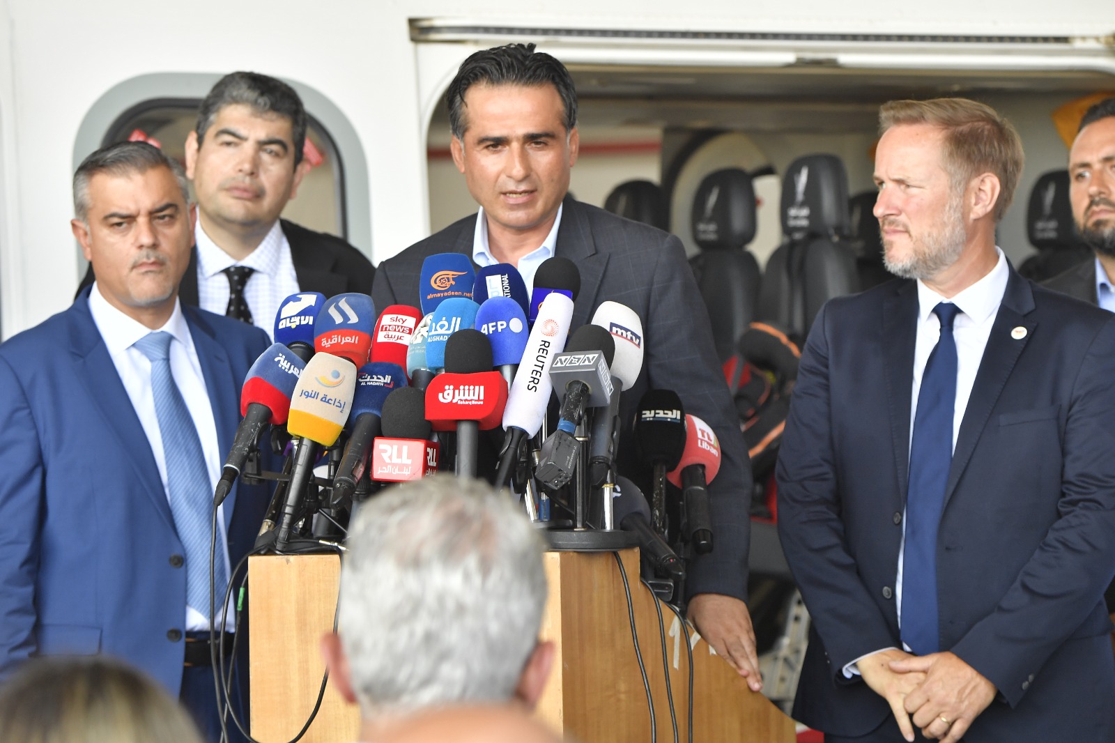 وتزامن وصول منصة الحفر مع زيارة ميدانيّة، لوزيري الأشغال العامّة والنقل والطاقة والمياه في حكومة تصريف الأعمال علي حميّة ووليد فياض إلى القاعدة اللوجستية التي تم اعتمادها في مطار رفيق الحريري الدولي بيروت لإقلاع وهبوط طائرة الهليكوبتر، المخصّصة لتقديم الخدمات من وإلى منصة الحفر للتنقيب عن النفط والغاز في البلوك رقم ٩.