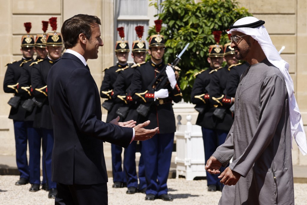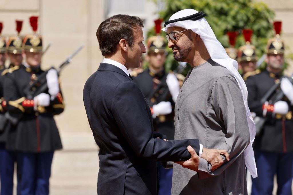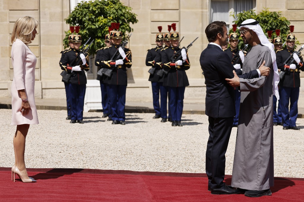 وكان ماكرون وزوجته بريجيت في استقبال الشيخ محمد بن زايد عند مدخل قصر الإليزيه. وزار الرئيس الإماراتي في وقت سابق ساحة متحف الجيش الوطني حيث استقبله وزير الدفاع سباستيان لوكونور.