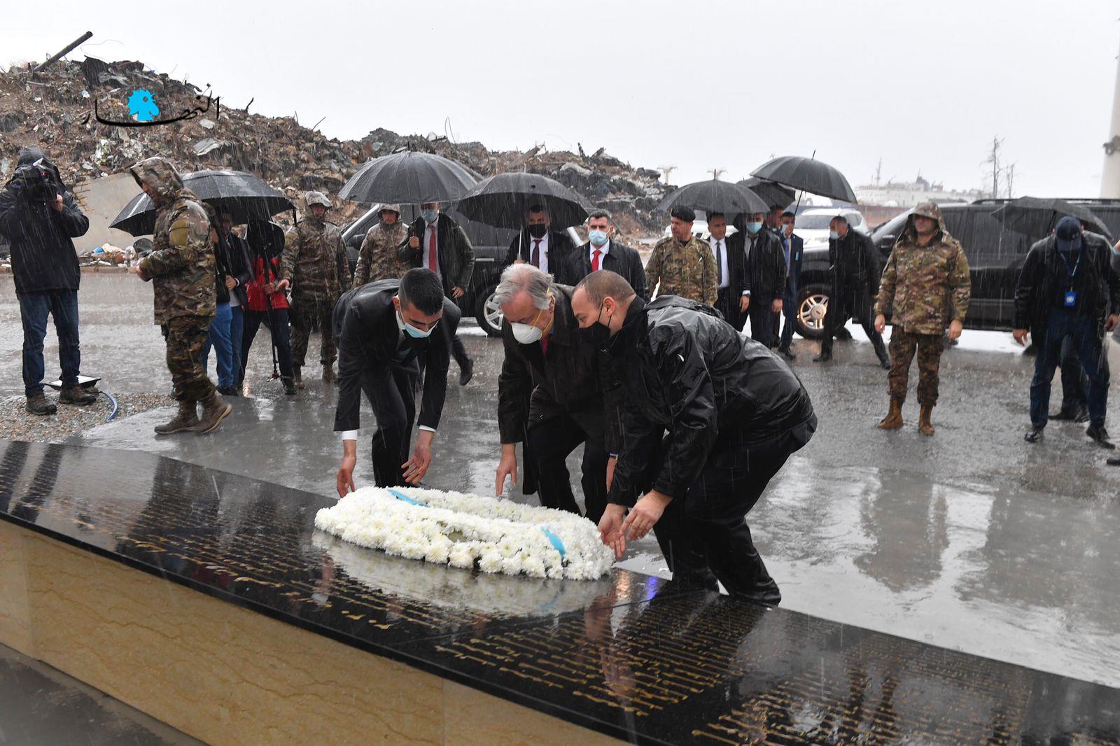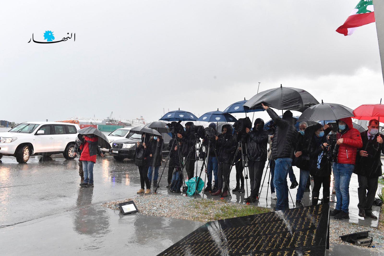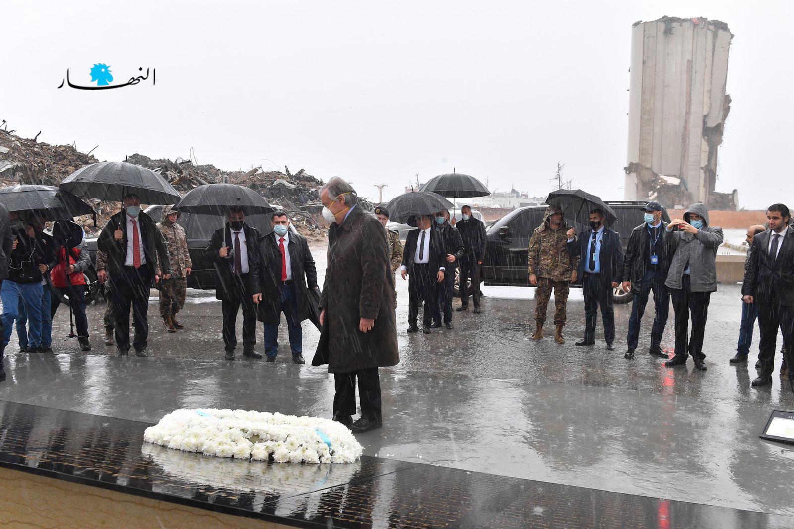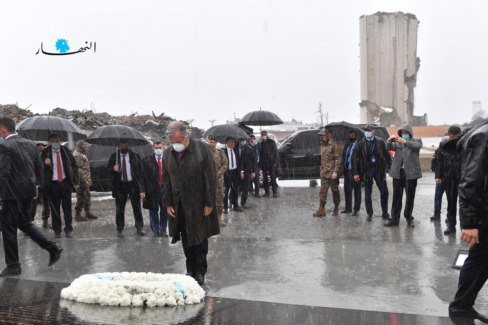 واختتم جولته بوضع إكليل على النصب التذكاري لضحايا انفجار المرفأ.