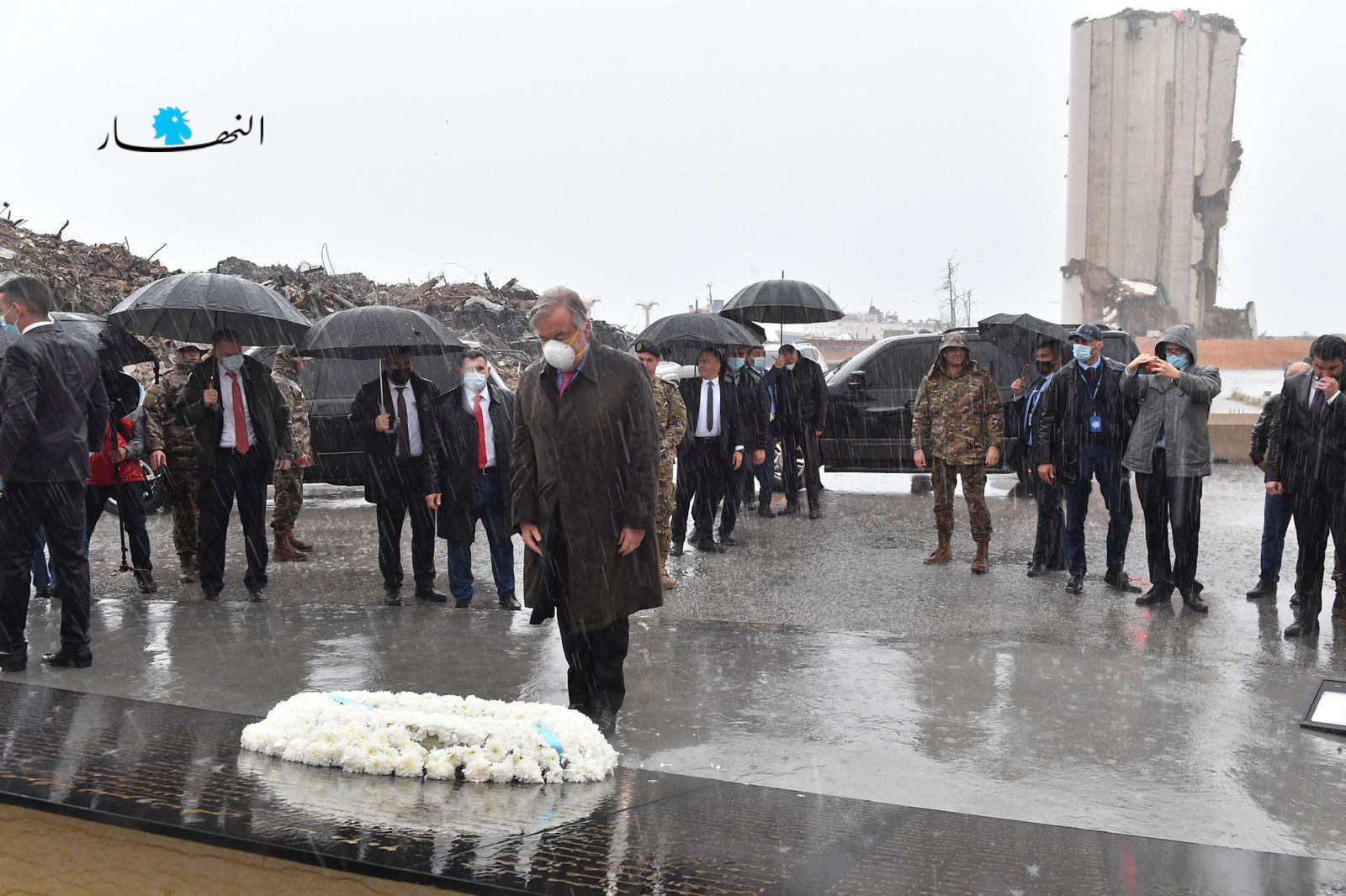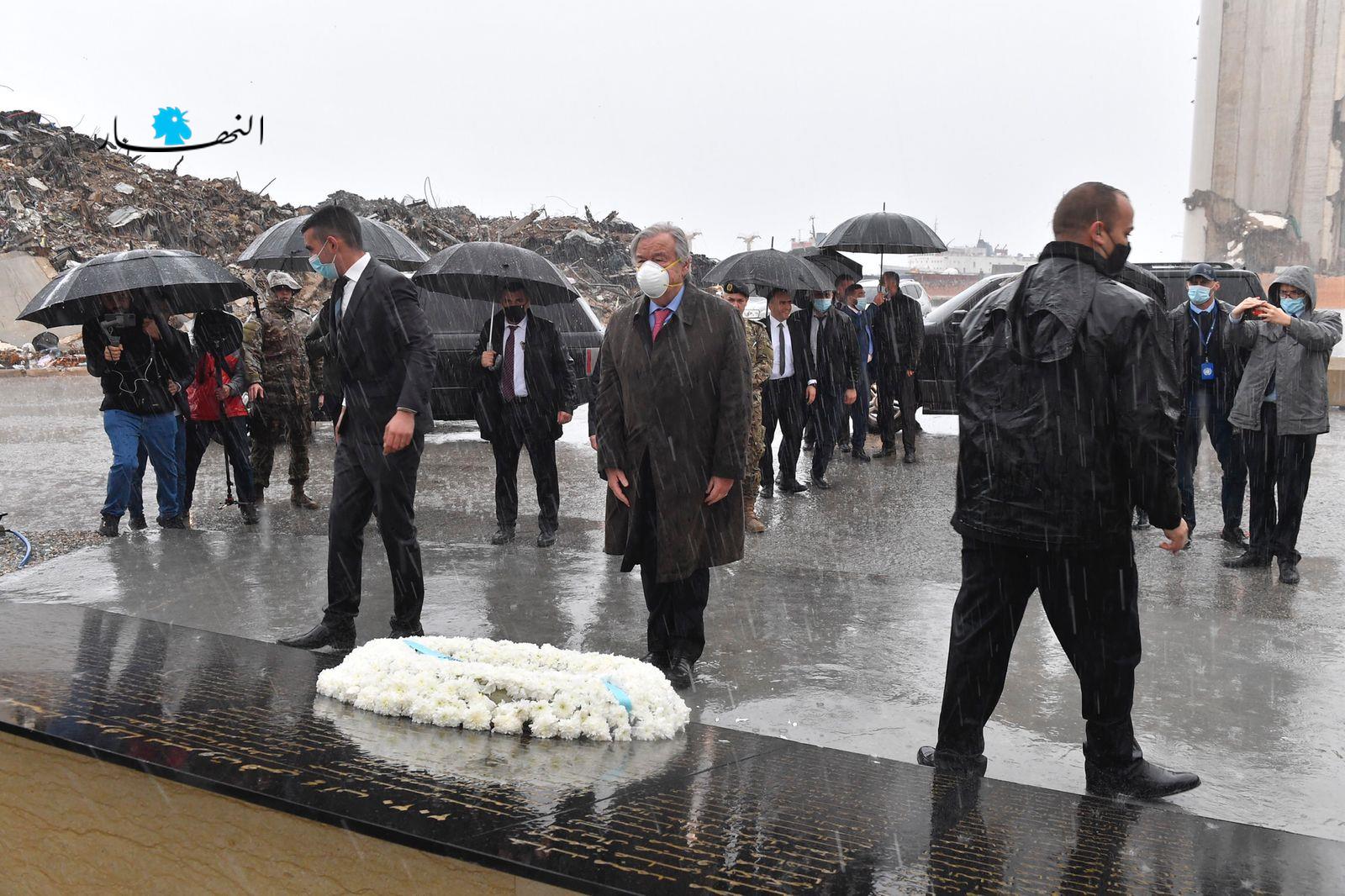 استكمل الامين العام للامم المتحدة انطونيو غوتيريس زيارته الرمسية إلى لبنان، وزار قبل ظهر اليوم، مرفأ بيروت وجال في ارجائه للاطلاع على الاضرار التي لحقت به جراء انفجار 4 آب.