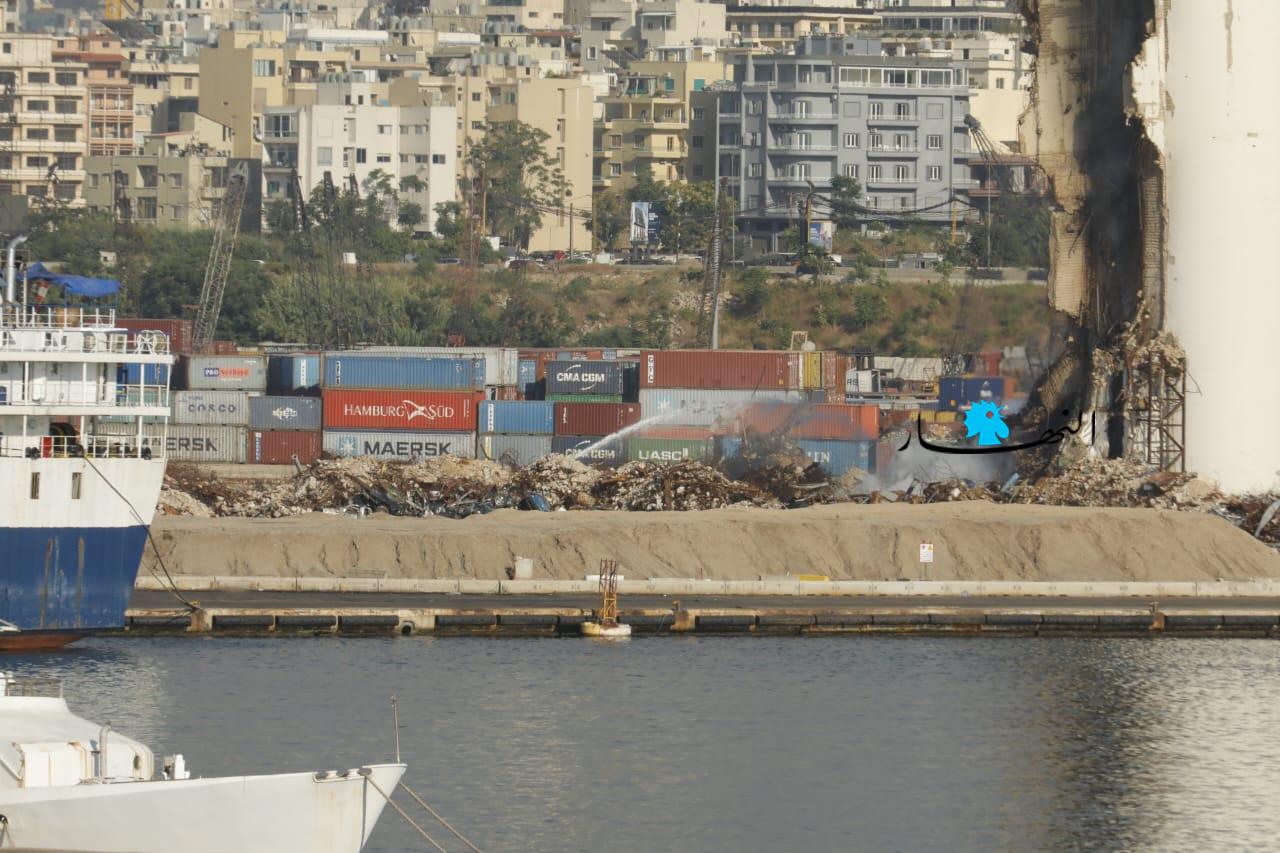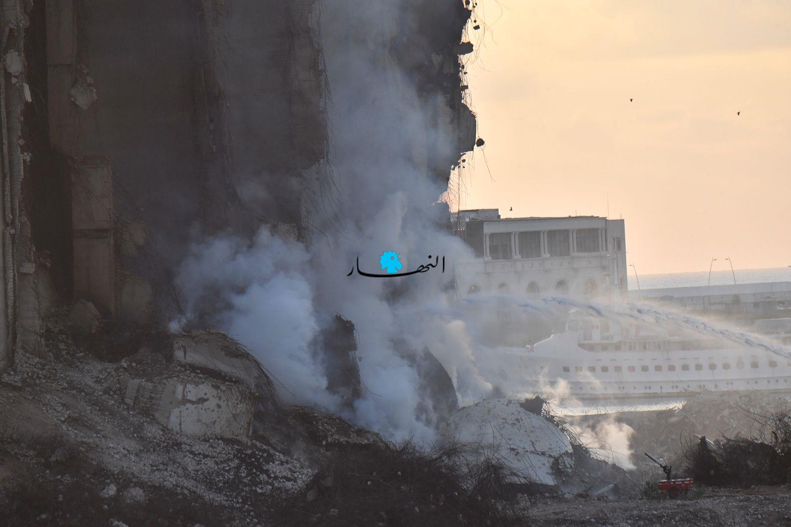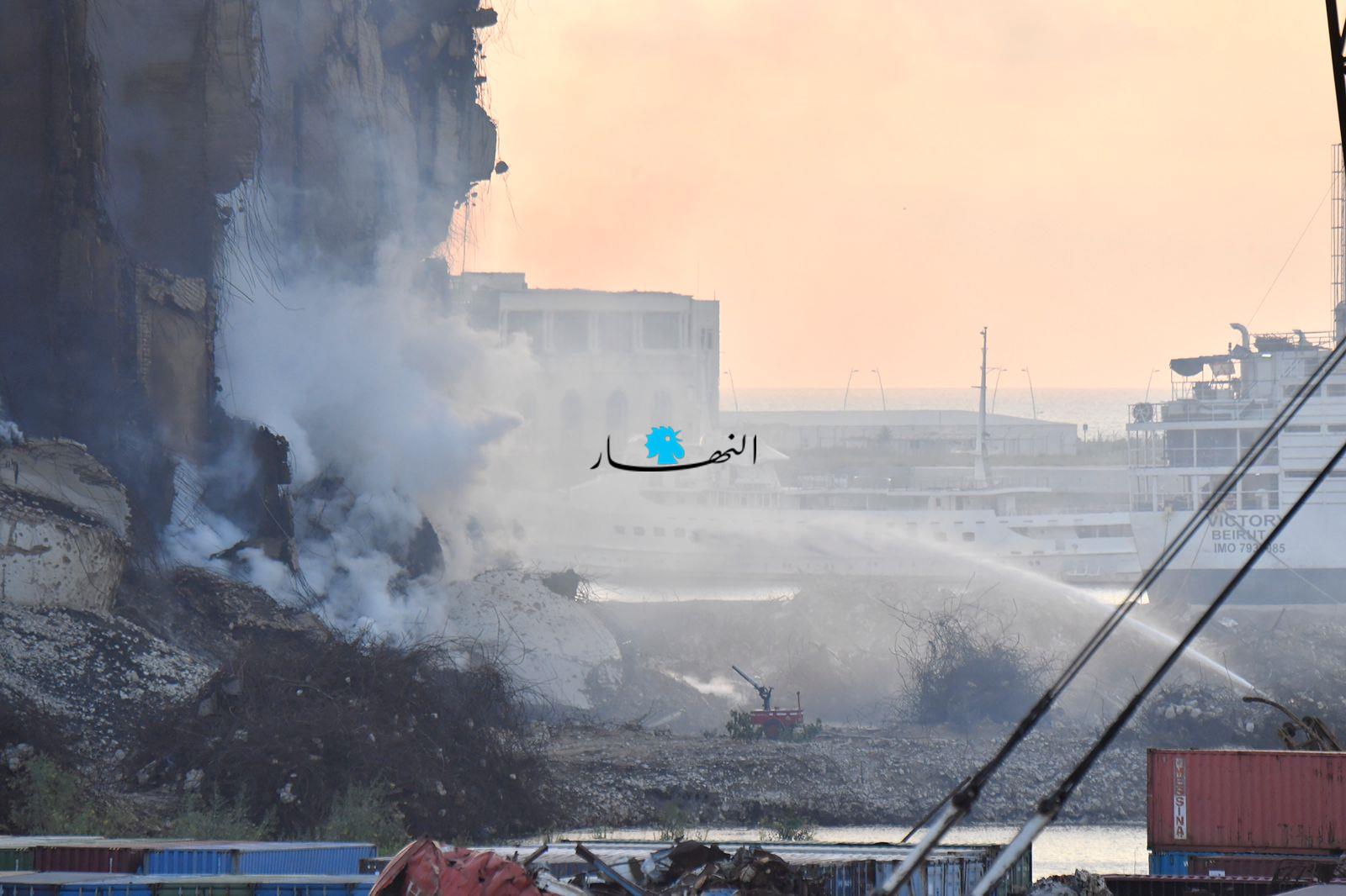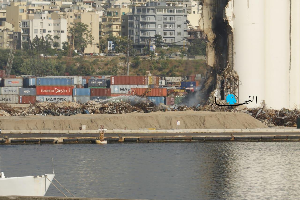 تواصل عناصر الدفاع المدني وفوج إطفاء بيروت العمل على إطفاء الحريق المندلع في أهراءات مرفأ بيروت منذ أسبوعين تقريباً، وتنصبّ جهود الفرق على الاستمرار بتبريد المكان منعاً لتجدُّد الحريق.
